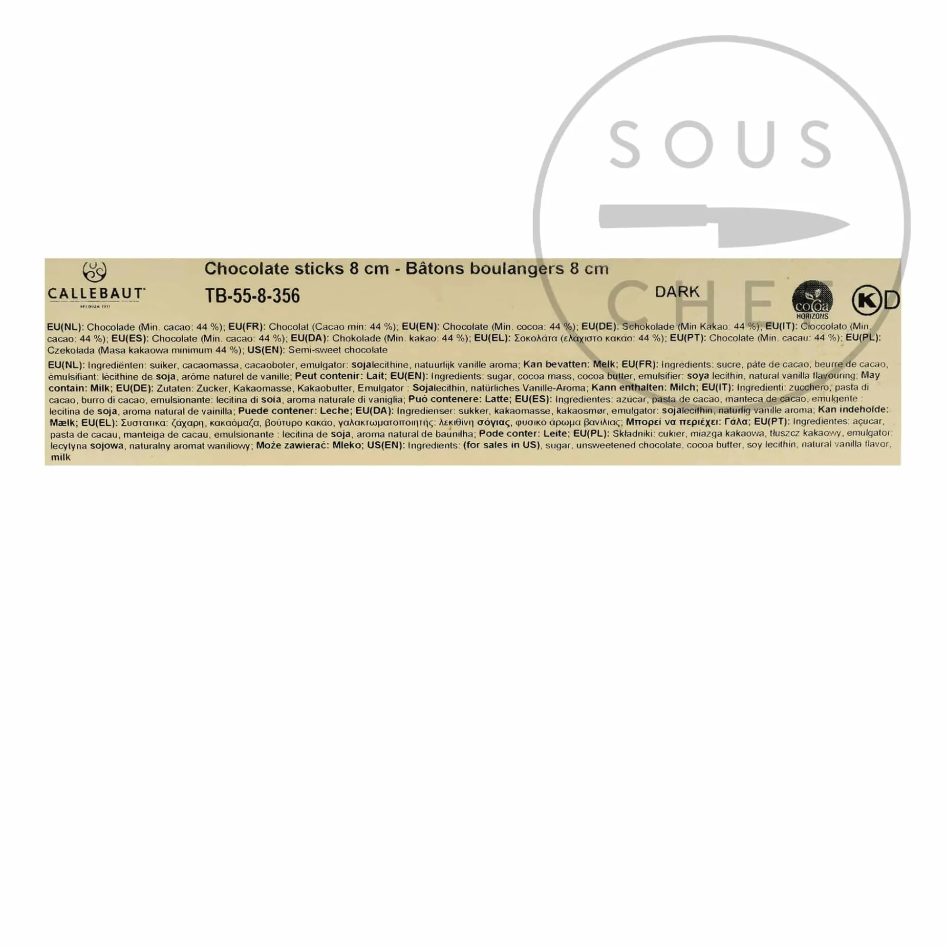 Callebaut dark chocolate sticks for croissants and pain au chocolat make it incredibly simple to bake french pastries filled with the finest quality dark chocolate. Simply place in your laminated dough before baking.