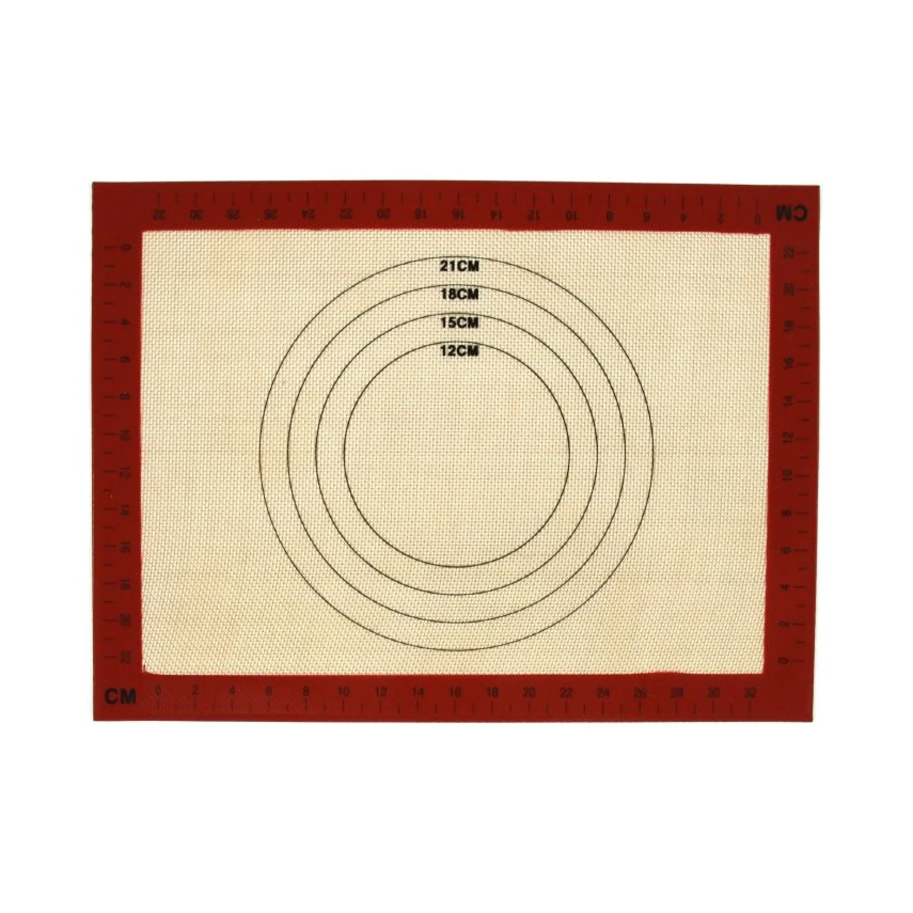 This fibre-glass reinforced silicone pastry mat is designed for professional use. The non-stick flexible silicone mat is marked with different sized concentric circles and measurements along both edges for rolling out pastry.
