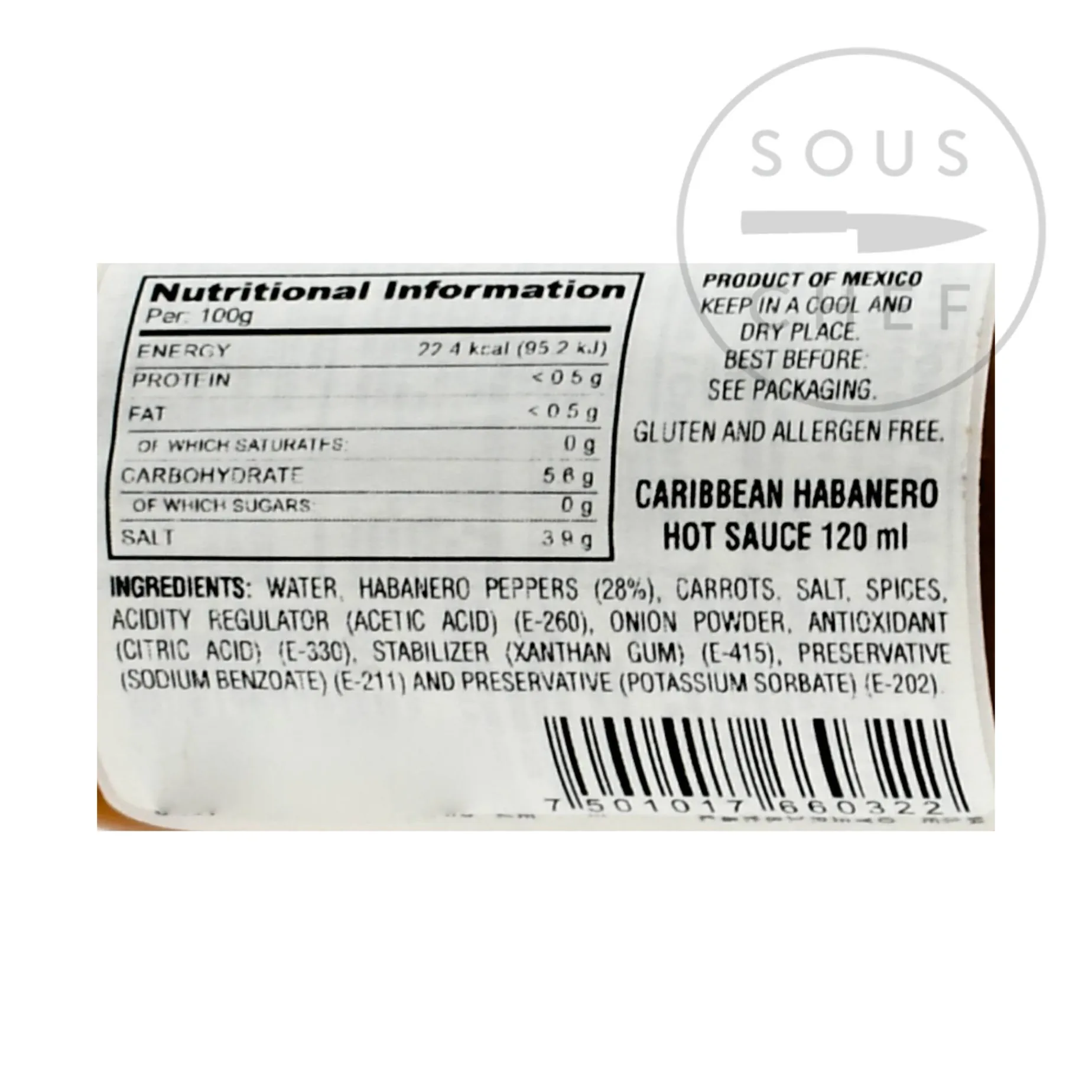The El Yucateco Habanero Caribbean Sauce is a perfect blend of yellow habanero peppers and fresh carrots. The slightly sweet flavour and chilli heat deliver the traditional flavours of Caribbean Cuisine, with a punchy Mexican twist. Enjoy drizzled over scrambled eggs at breakfast, in soups or with your favourite pizza. Bear in mind, this is a pretty hot chilli sauce.