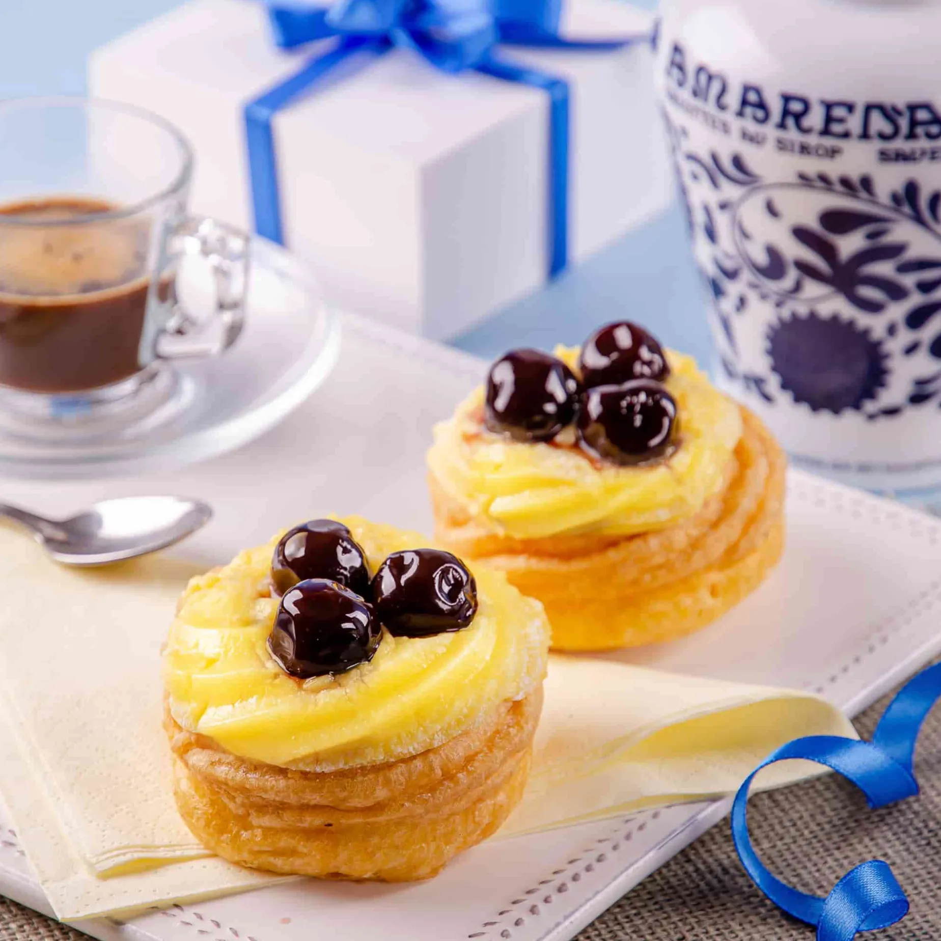 Amarena cherries are small black cherries that grow wild in the Italian cities of Bologna and Modena. They are commonly gently cooked and preserved in sugar syrup, then used as a dessert topping.