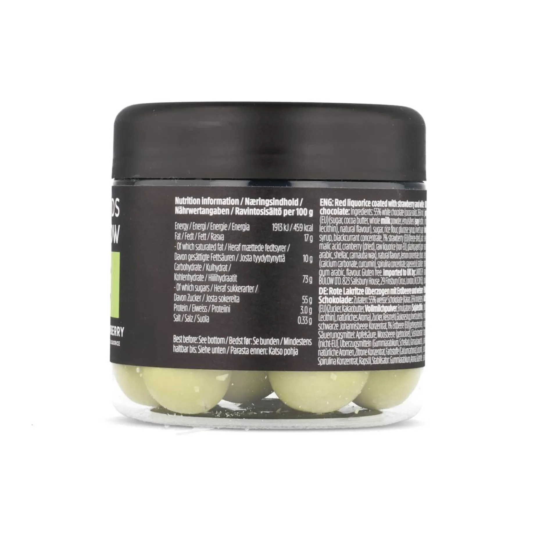 Product formulations and details may change. For the latest ingredients and allergen information always check product packaging prior to consumption. Ingredients: 55% white chocolate (cocoa solids: 26% min) (EU) sugar, cocoa butter, whole milk powder, emulsifiers (soy lecithin, lecithin, natural flavour), sugar, rice flour, glucose syrup, invert sugar syrup, blackcurrant concentrate, 1% strawberry (EU)(freeze-dried), acid: citric acid, cranberry (dried), raw liquorice (non-EU), glazing agents (gum arabic, shellac, caranauba wax), natural flavours, lemon concentrate, colours (calcium carbonate, curcumin), spirulina concentrate, rapeseed oil, stabilizer: gum arabic, flavour. gluten free