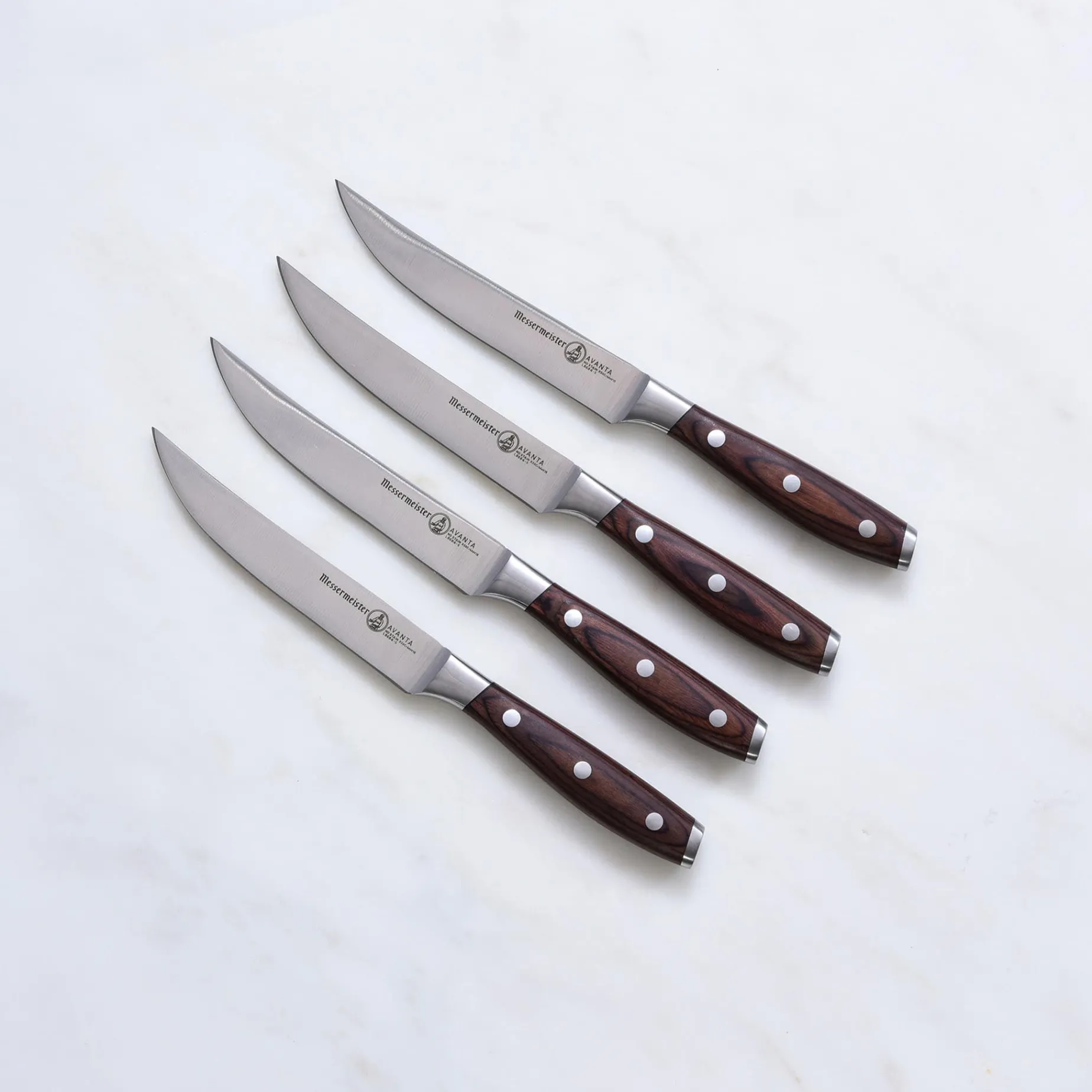 The Messermeister Avanta Pakkawood 4-piece steak knife set features four premium-quality German stainless steel knives for slicing steaks smoothly and effortlessly. These 12.7cm knives have a smooth blade which protects even the most delicate steak cuts against tearing.