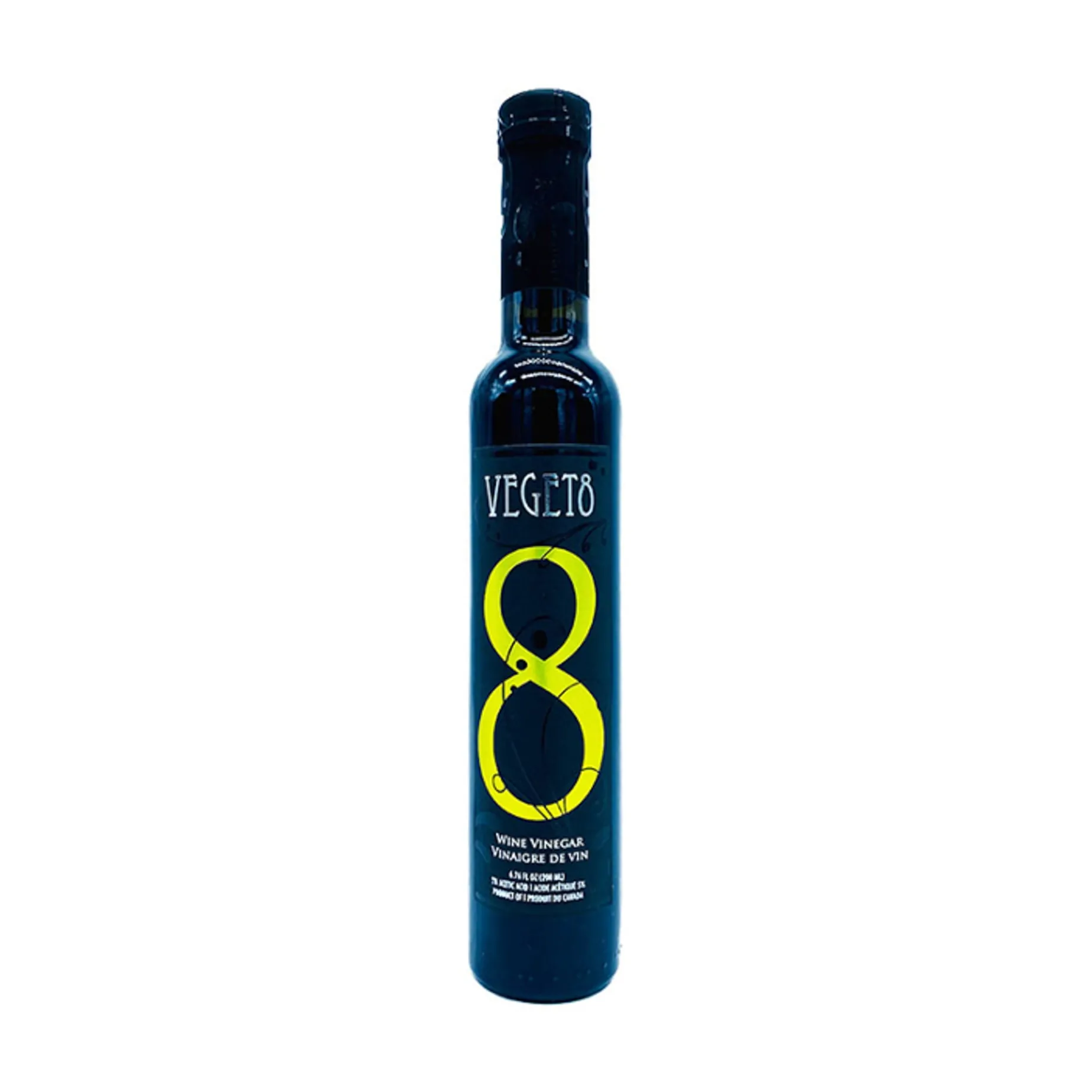 Veget8 vinegar is made in small batches at the Minus 8 vineyard. It starts with Cabernet Franc grapes which are made into ice wine and then vinegar. This is combined with vinegar made from locally grown Roma tomatoes.