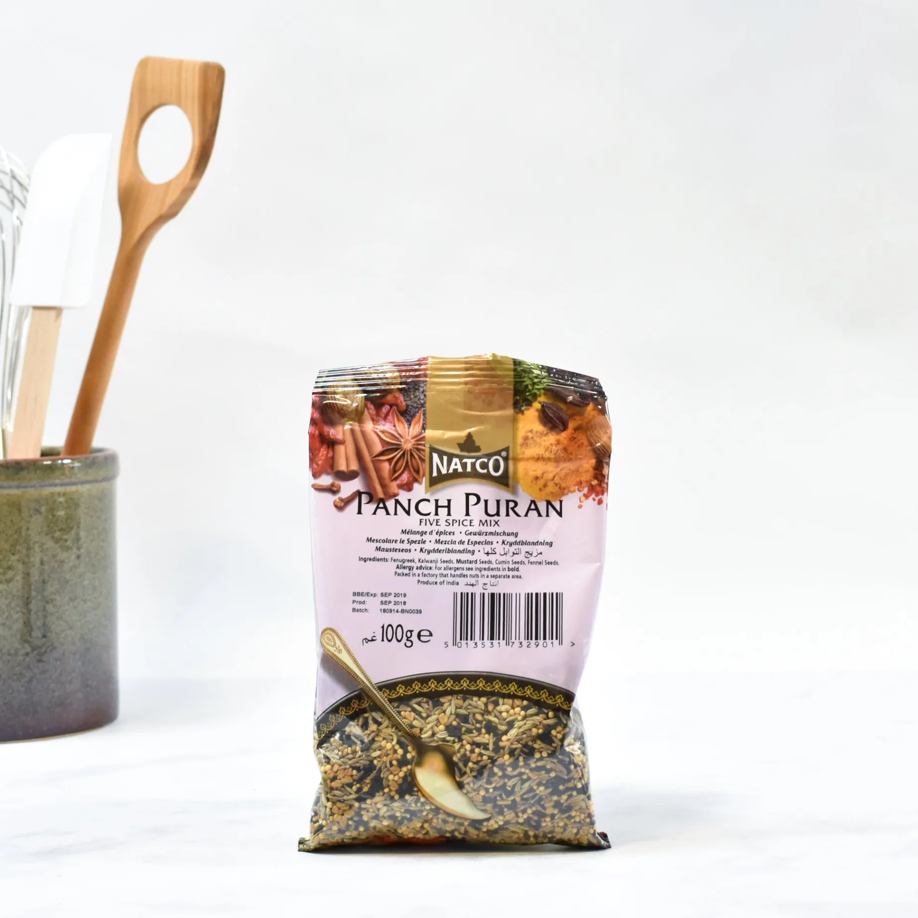 Product formulations and details may change. For the latest ingredients and allergen information always check product packaging prior to consumption. Ingredients: Fenugreek, kalwanji seeds, mustard seeds, cumin seeds, fennel seeds. Contains mustard.