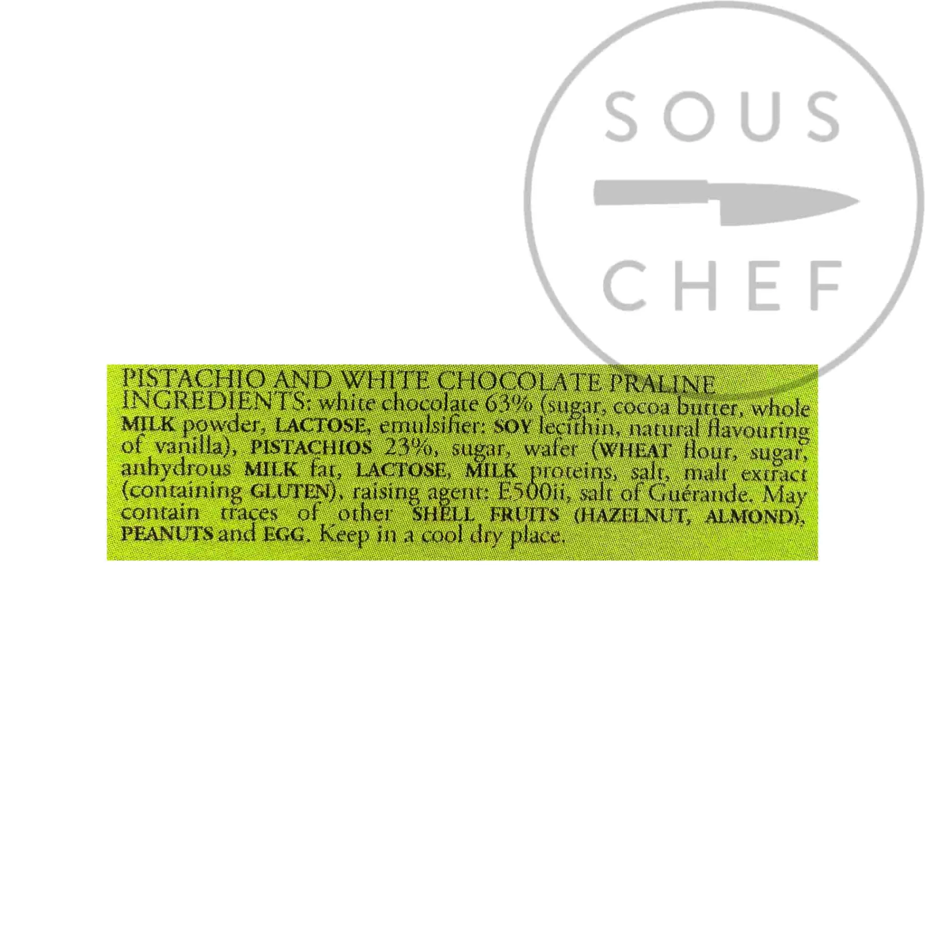 Product formulations and details may change. For the latest ingredients and allergen information always check product packaging prior to consumption. Ingredients: white chocolate 63% (sugar, cocoa butter, whole milk powder, lactose, emulsifier: soy lecithin, natural flavouring of vanilla), pistachios 23%, sugar, wafer (wheat flour, sugar, anhydrous milk fat, lactose, milk proteins, salt, malt extract (containing gluten), raising agent: E500ii), salt of Guérande.