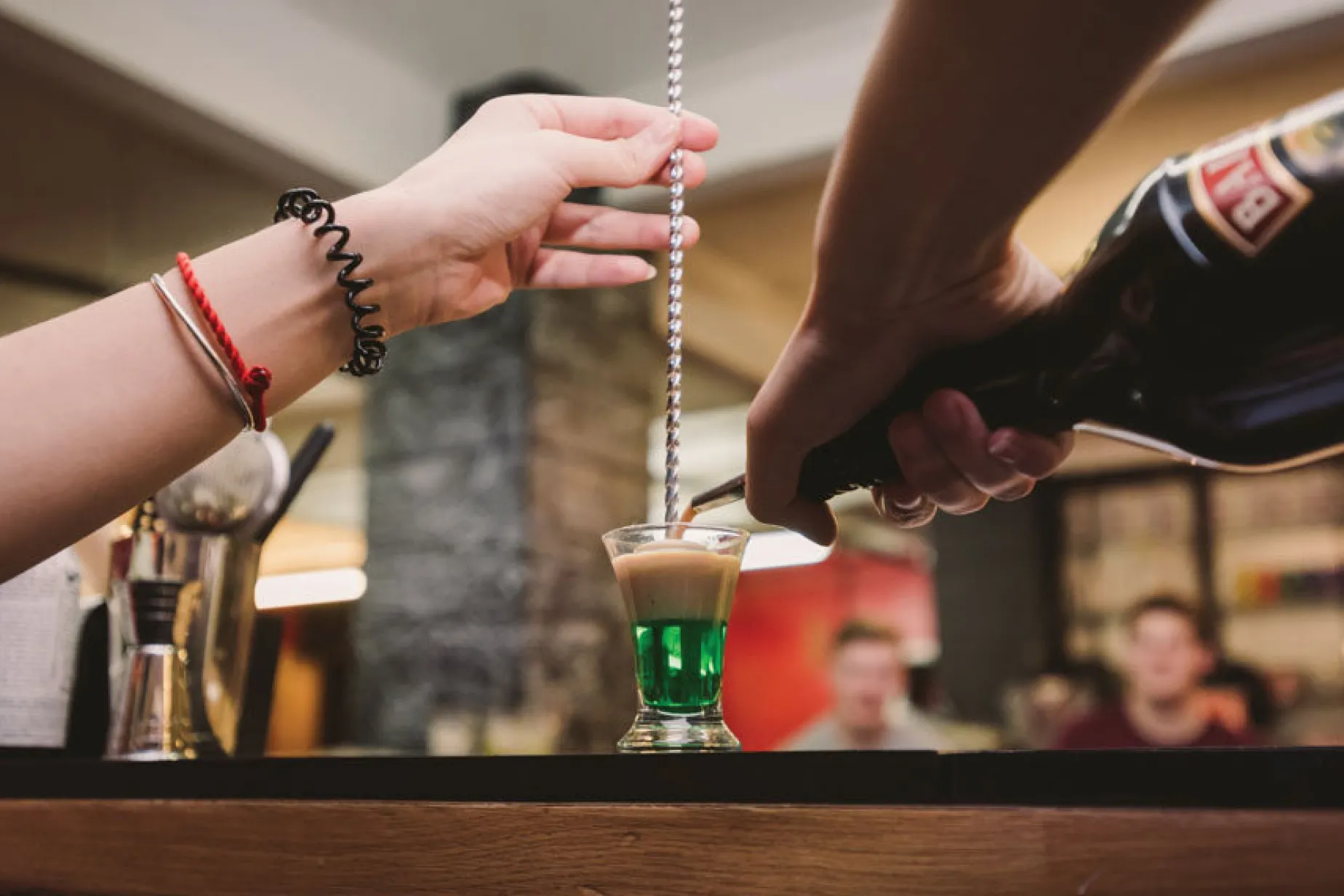 With practice, you can also drizzle spirits and syrups down the twisted stem for added spectacle when making layered cocktails.
