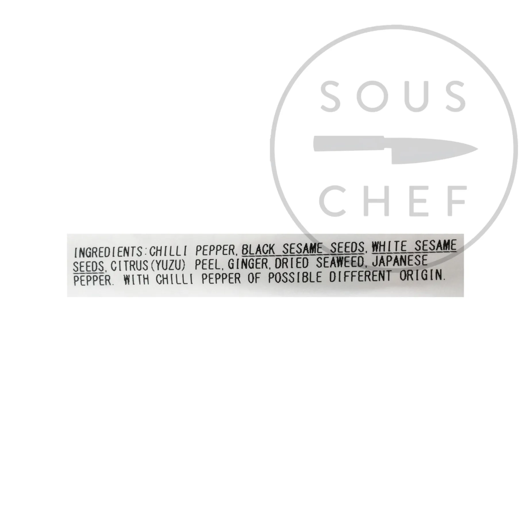 Product formulations and details may change. For the latest ingredients and allergen information always check product packaging prior to consumption. Ingredients: chilli pepper, black sesame seed, white sesame seed, citrus (yuzu) peel, ginger, dried seaweed, Japanese pepper (with pepper of possible different origin).