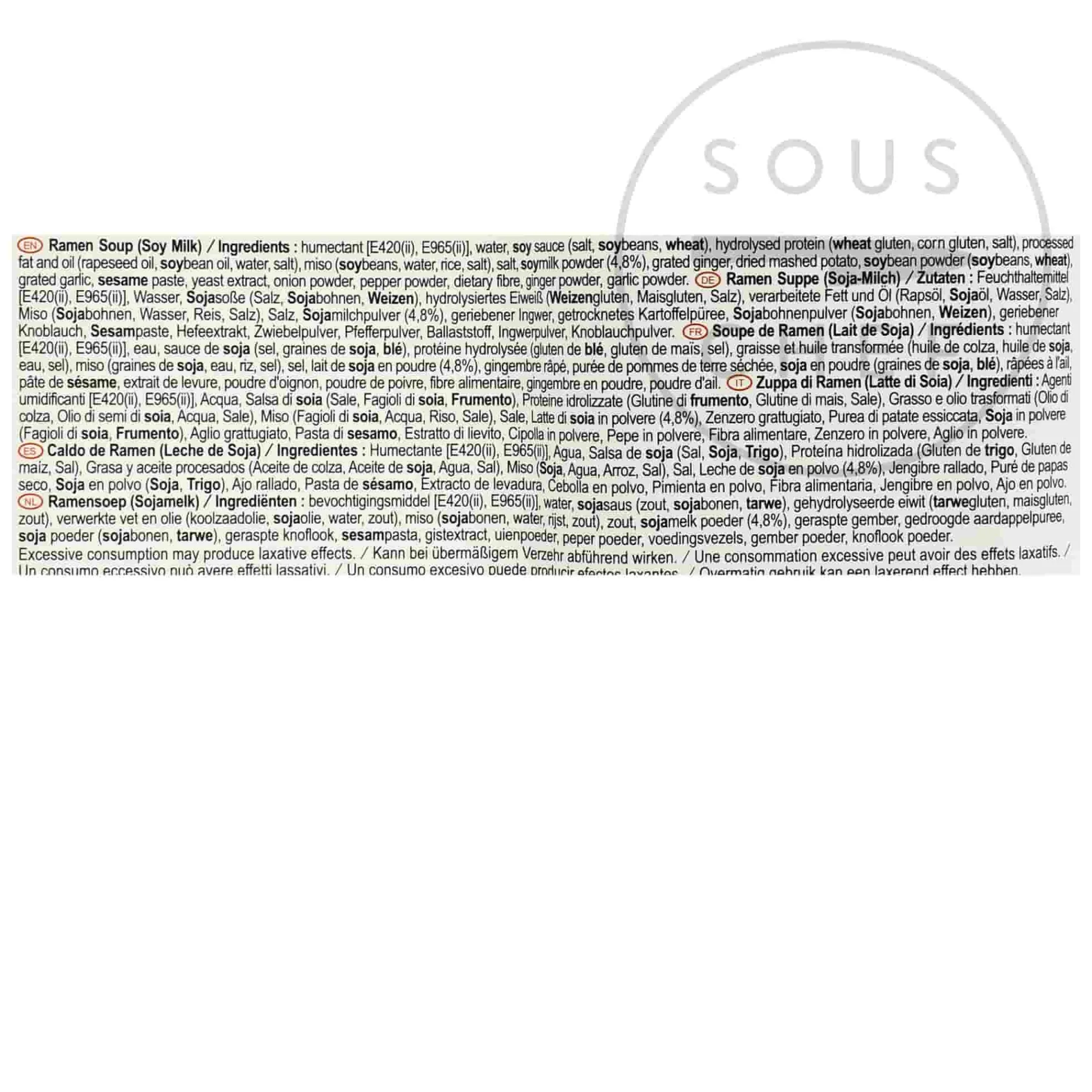 Product formulations and details may change. For the latest ingredients and allergen information always check product packaging prior to consumption. Ingredients: Humectants: E420 (ii), E965 (ii), water, soy sauce (salt, soybeans, wheat), hydrolyzed protein (wheat gluten, corn gluten, salt), processed fats and oils (rapeseed oil, soya oil, water, salt), miso (soybean water, rice, salt), salt, soy milk powder, grated ginger, dried mashed potatoes, soybean powder (soybeans, wheat), grated garlic, sesame paste, yeast extract, onion powder, pepper powder, fibre, ginger powder, garlic powder.