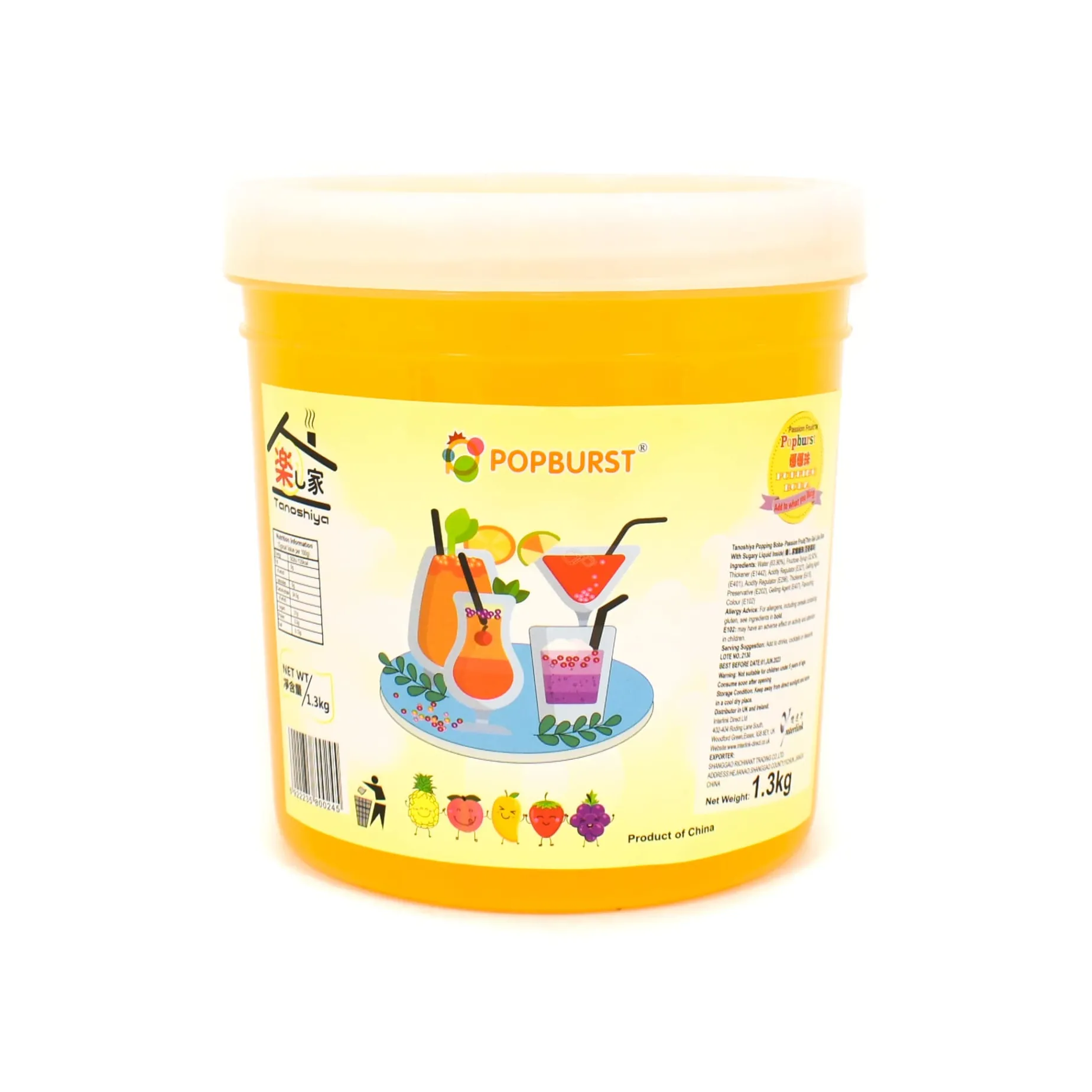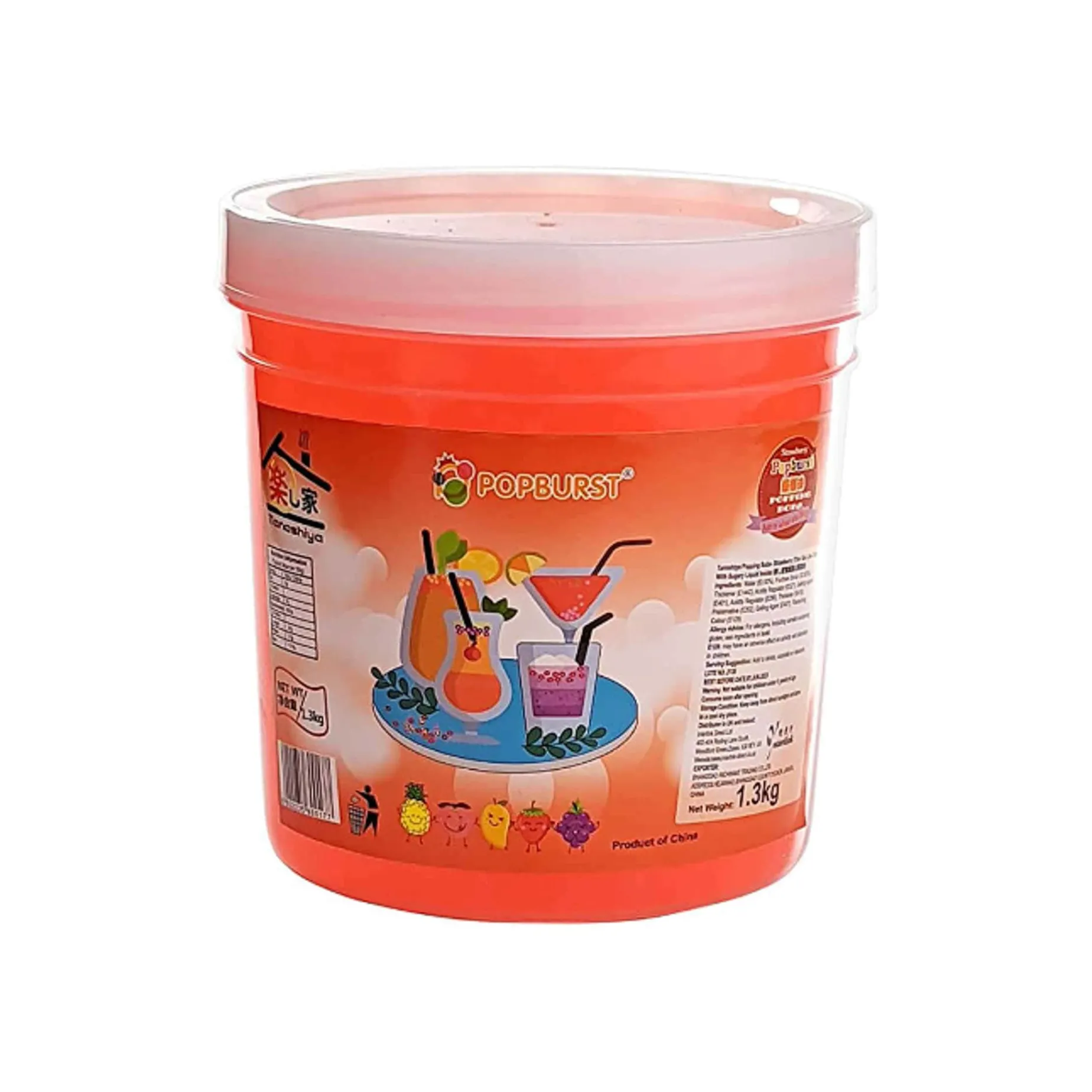 Popping boba are different in texture from Tapioca pearls, which are also used in bubble tea. Tapioca have a chewy gelatinous texture all the way through, whereas popping boba have a thin membrane that pops in the mouth (as the name would suggest) to release a burst of fruit-flavoured juice. Tapioca requires cooking, whereas popping boba are ready to add to your drinks and desserts instantly.