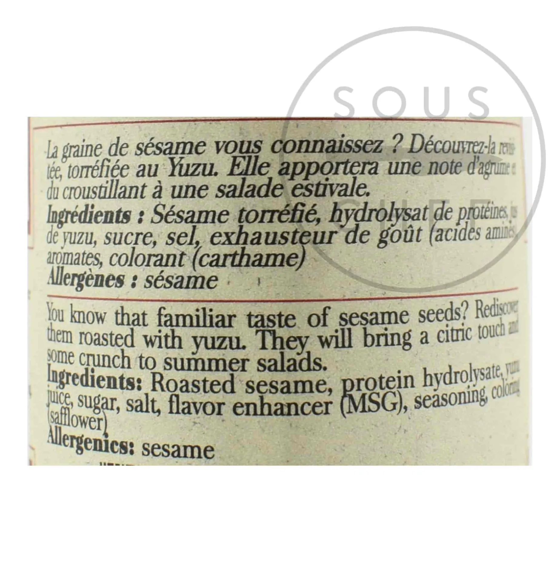 Product formulations and details may change. For the latest ingredients and allergen information always check product packaging prior to consumption. Ingredients: roasted sesame, protein hydrolysate, yuzu juice, sugar, salt, flavour enhancer (MSG), seasoning, colouring (safflower).