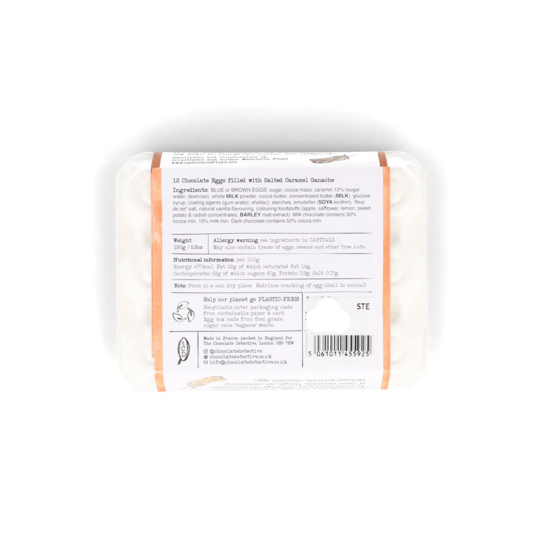 Chocolate Detective’s song thrush chocolate eggs have beautifully realistic speckled shells. Open the box to reveal 12 eggs with pale brown shells. The crunchy sugar shells hide a sweet surprise. Inside, you’ll find layers of milk and dark chocolate. The eggs are filled with ganache and lightly salted caramel.