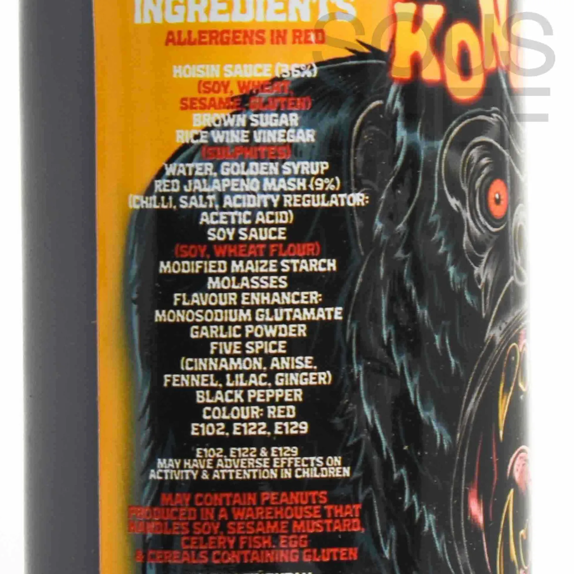 Product formulations and details may change. For the latest ingredients and allergen information always check product packaging prior to consumption. Ingredients: Rice wine vinegar (sulphites), soy sauce (soy), hoisin sauce (soy, wheat, sesame, gluten), golden syrup, molasses, water, brown sugar, msg, 5 spice, ginger powder, black pepper, garlic powder, ginger powder, red jalapeno mash, colour (e102, e122, e129)