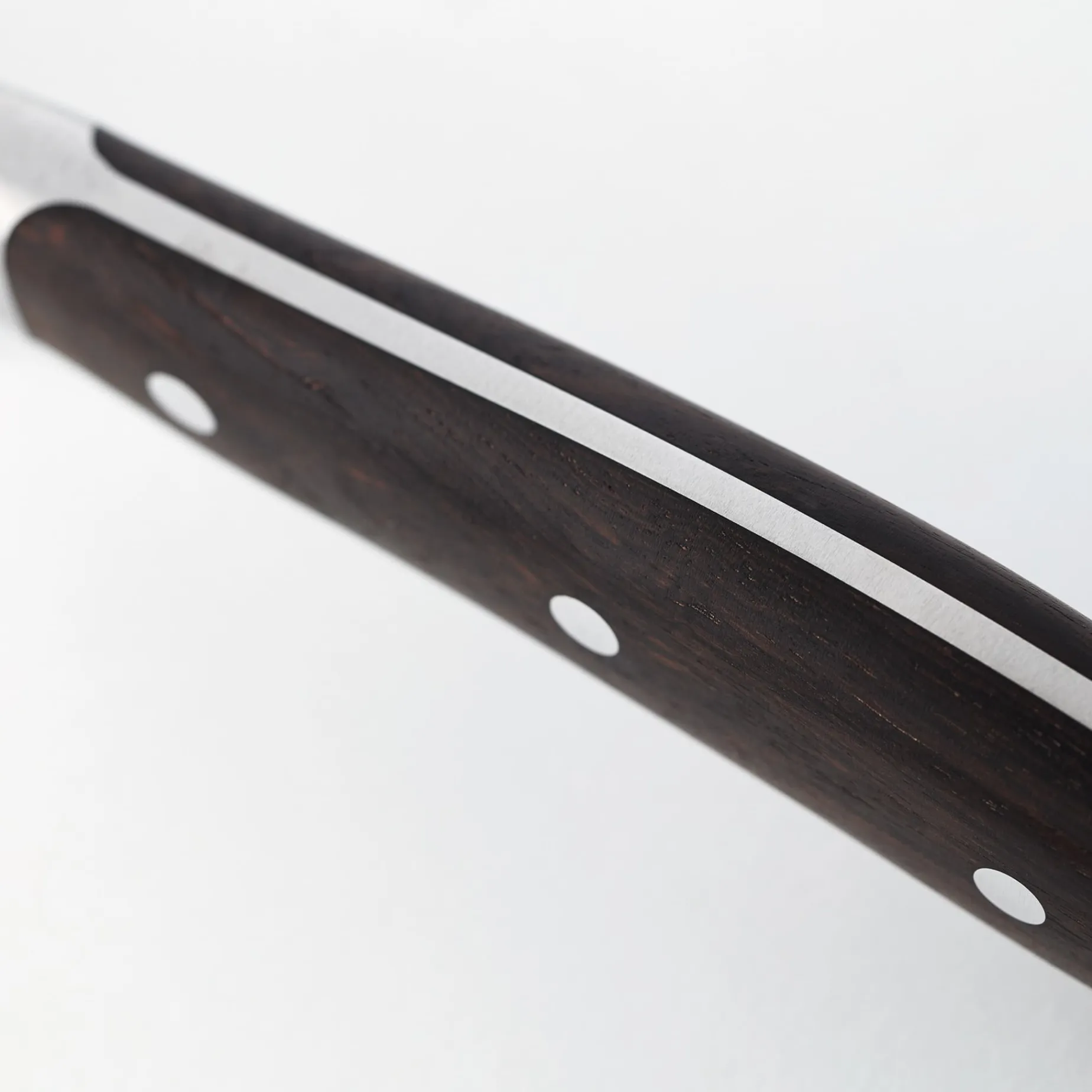 The Ikon series is celebrated for its ergonomic handles, meticulously crafted from sustainably grown African Blackwood. With a double bolster ensuring optimal weight distribution, this knife offers a comfortable, secure grip and precise control, elevating your carving experience to new heights.