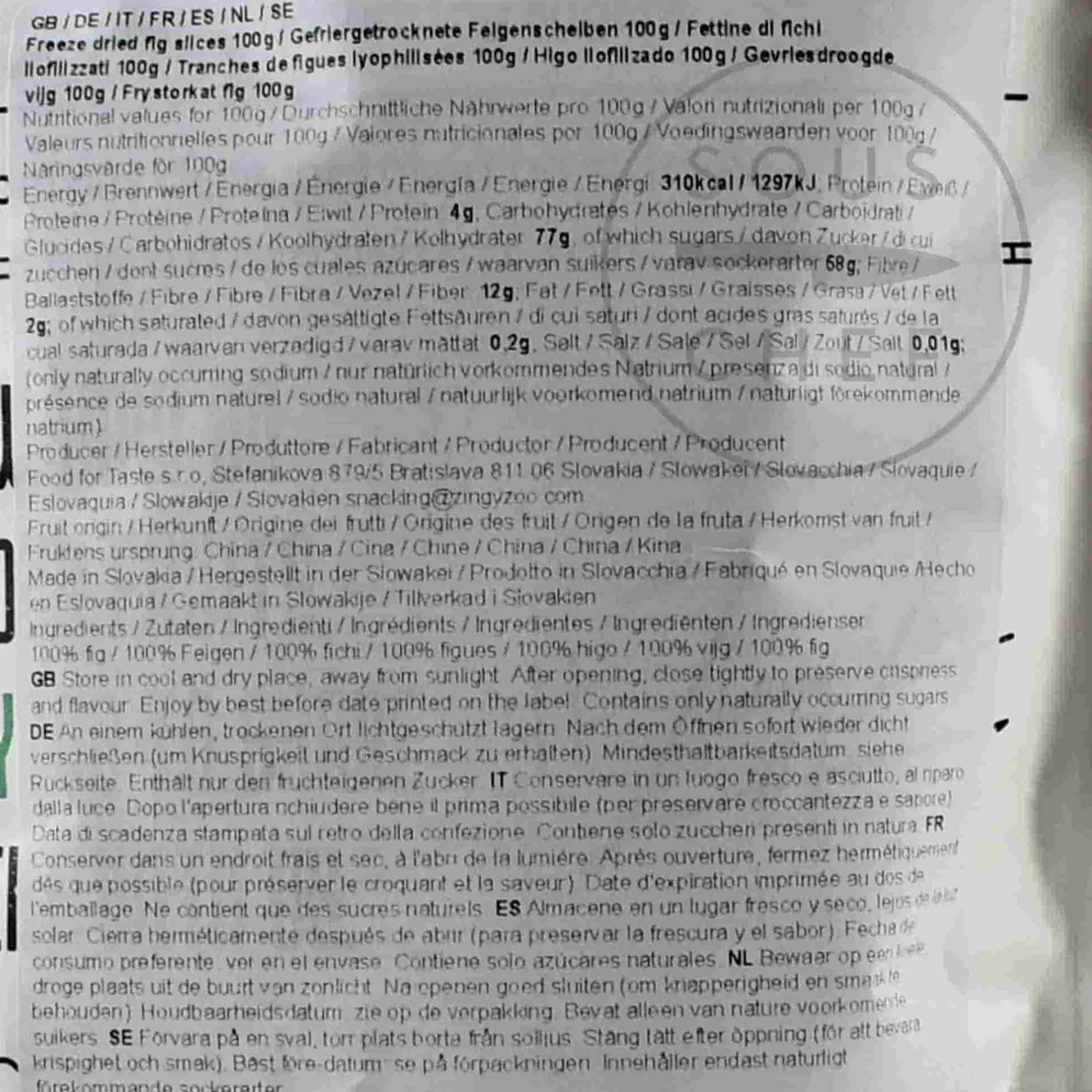 Product formulations and details may change. For the latest ingredients and allergen information always check product packaging prior to consumption. Ingredients: 100% fig