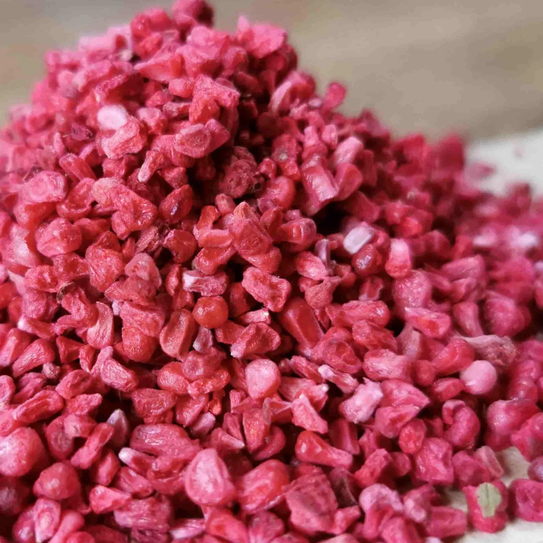 Add these raspberry pieces to your morning cereal or yoghurt. They also work brilliantly in recipes or for decorations. They add raspberry flavour without the fruit’s water content altering the recipe balance. Garnish parfaits, ripple through white chocolate ganache or coat chocolate truffles for a pop of colour.