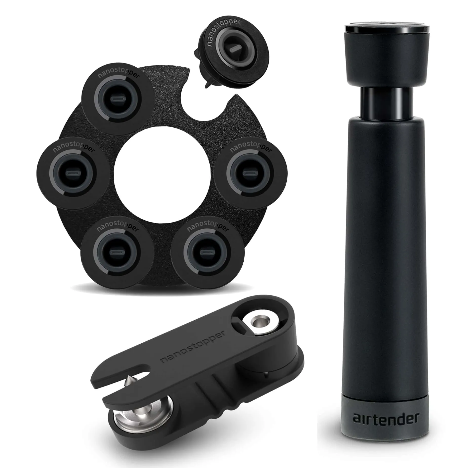 Size: Includes: x1 Vacuum Pump, x1 Lid Punch, x6 Nanostoppers, x1 Storage Clip