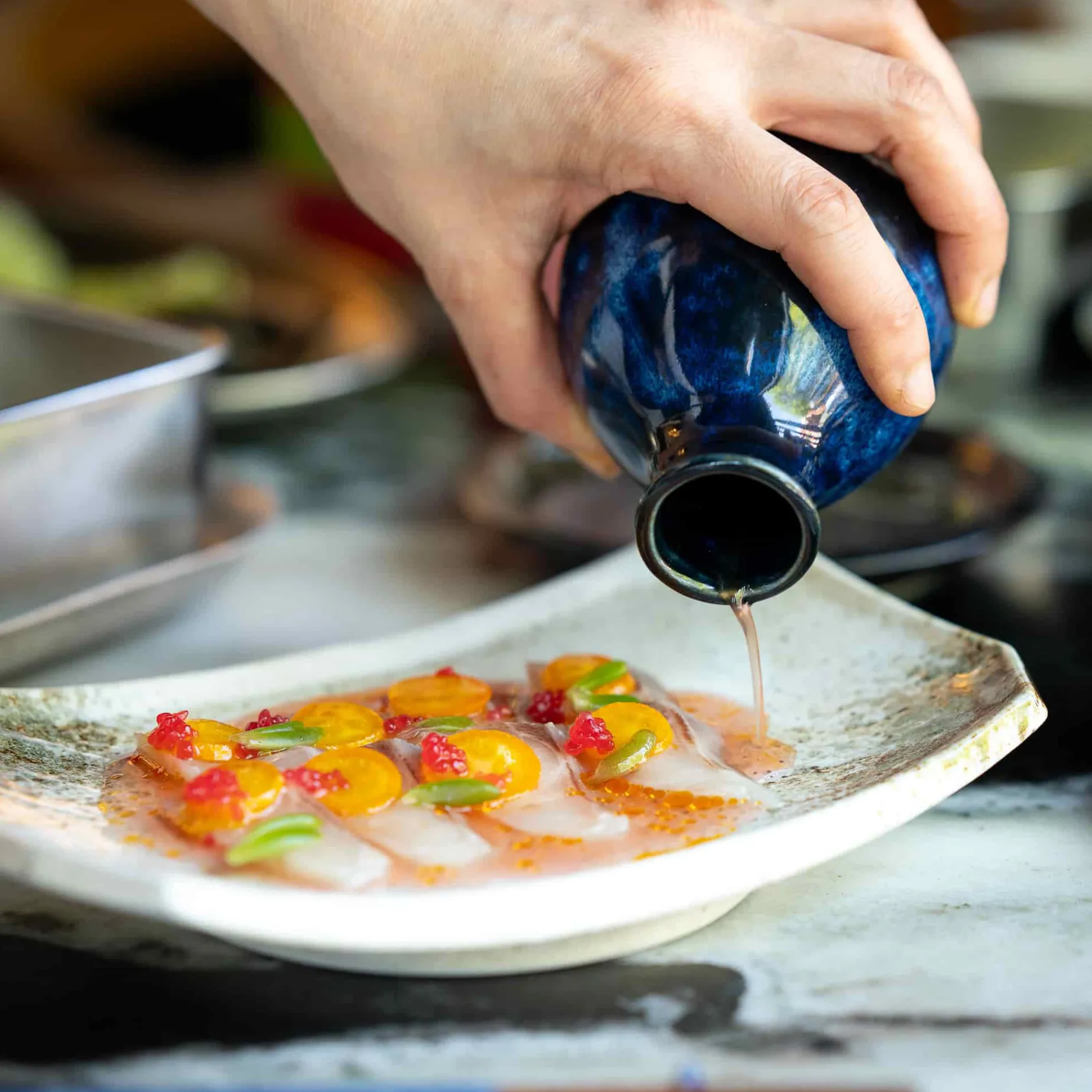 This stoneware blue sakura sake set is an elegant way to serve the Japanese rice wine.