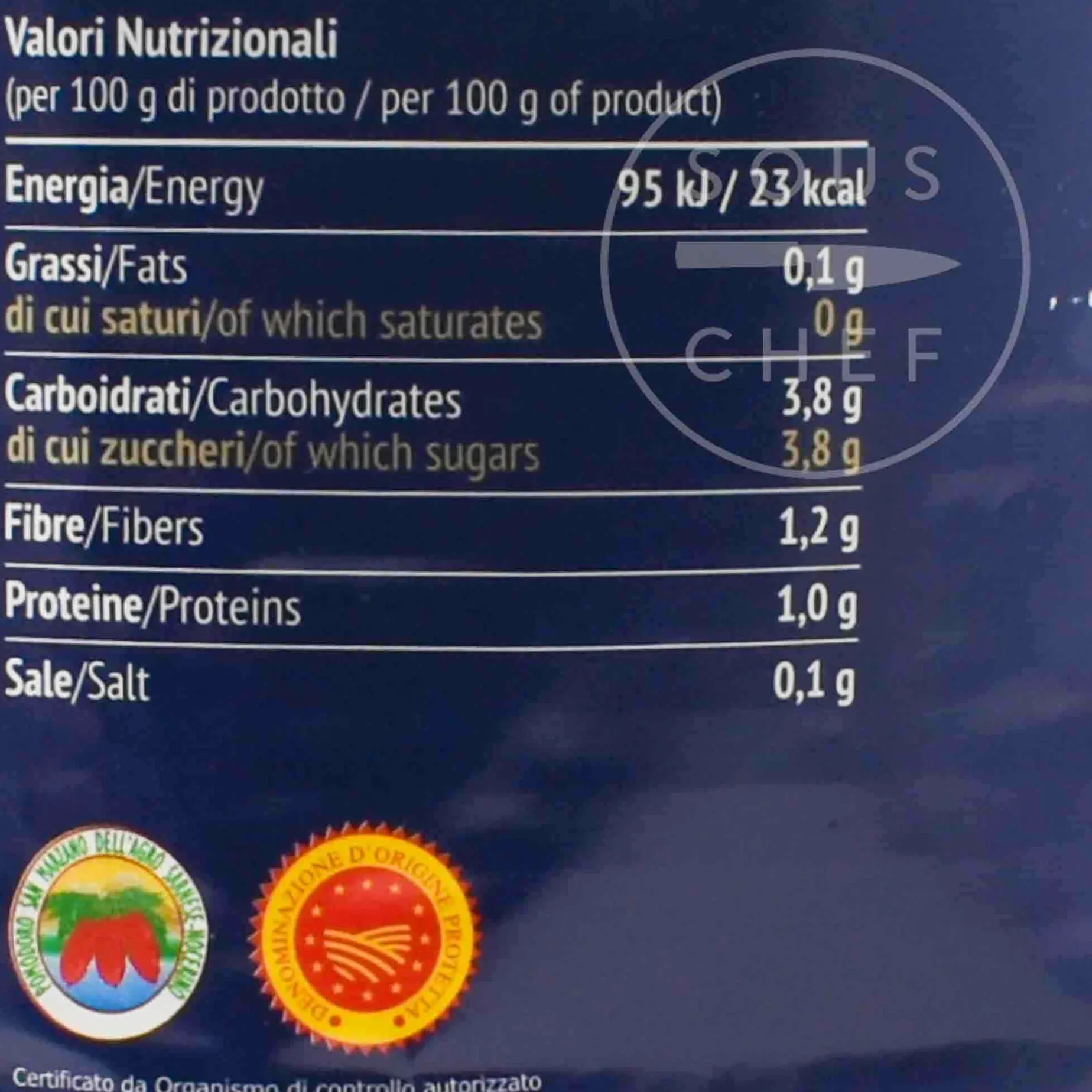 Product formulations and details may change. For the latest ingredients and allergen information always check product packaging prior to consumption. Ingredients: San Marzano whole peeled tomatoes of Agro Sarnese Nocerino PDO 65%, San Marzano tomato juice 34,99%, basil 0,01 %