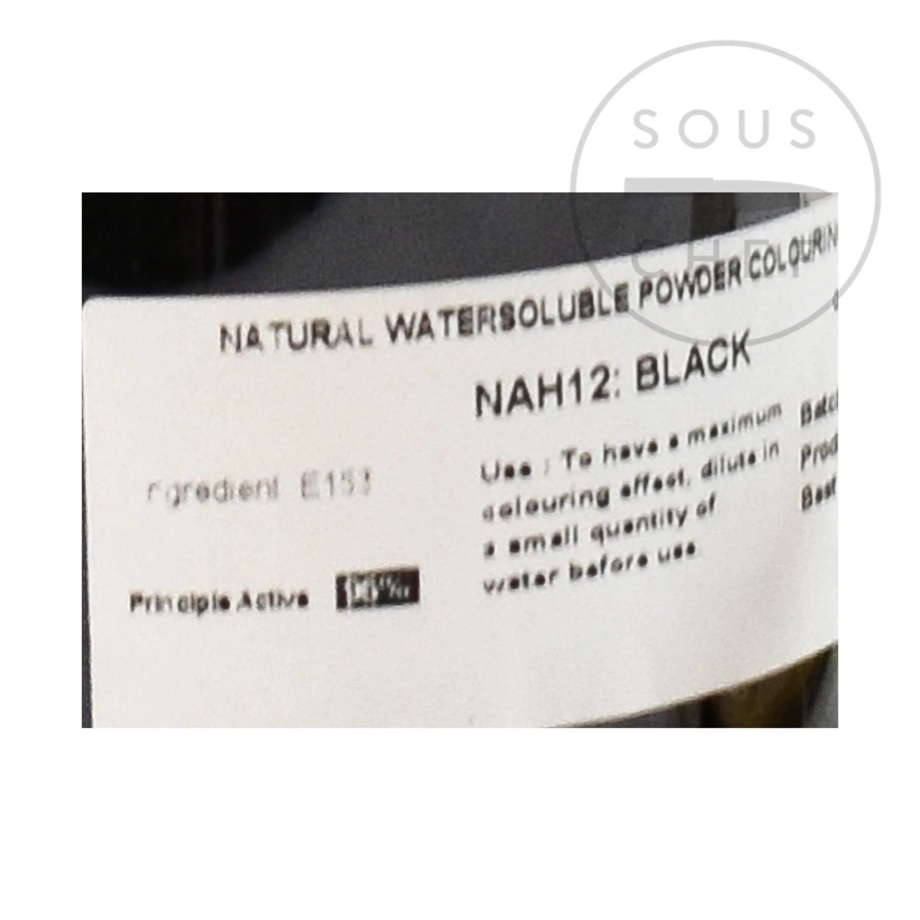 This professional natural black food colouring is perfect for sweet and savoury foods alike. It’s water-soluble, but – made from charcoal powder – the powder consistency of the colouring means that it doesn’t further dilute wet mixtures.