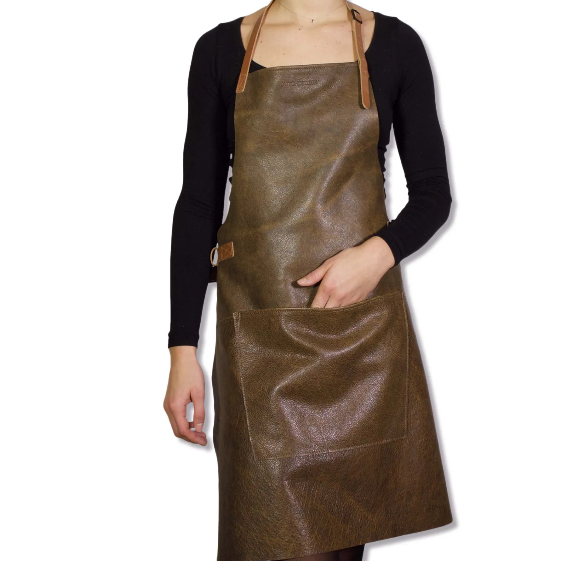 The Dutchdeluxes leather BBQ apron in vintage brown is the effortlessly stylish way to protect your clothes while you’re at the grill. It keeps your clothes safe from ash, sparks and spitting fat whether you’re outside or in the kitchen.