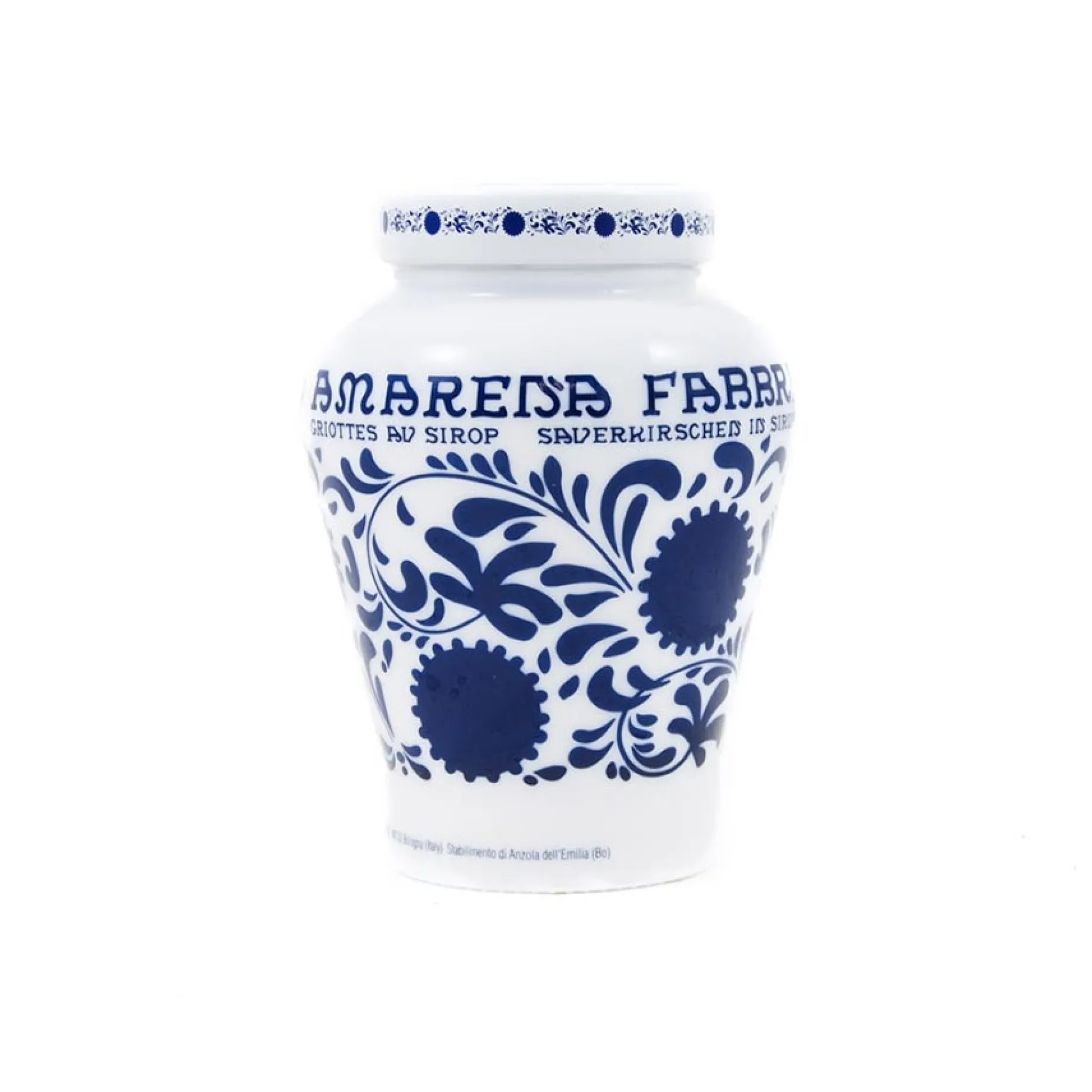 The Amarena is a variety of sour cherry that was developed by Gennaro Fabbri in 1869. His wife, Rachele, slowly cooked the cherries and semi-candied them. Gennaro liked them so much, that he bought a white-and-blue ceramic jar to thank her. Rachele had the idea to sell the cherry syrup in the decorative jars, and in 1905 the Fabbri company was born.