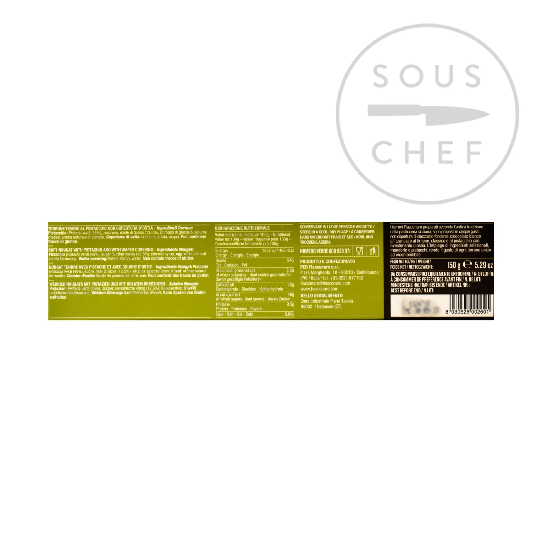 Fiasconaro Sicilian pistachio torrone is a real treat for pistachio fans. This soft nougat is packed with Sicilian pistachios, and is an ideal sweet treat after dinner or with a cup of coffee.