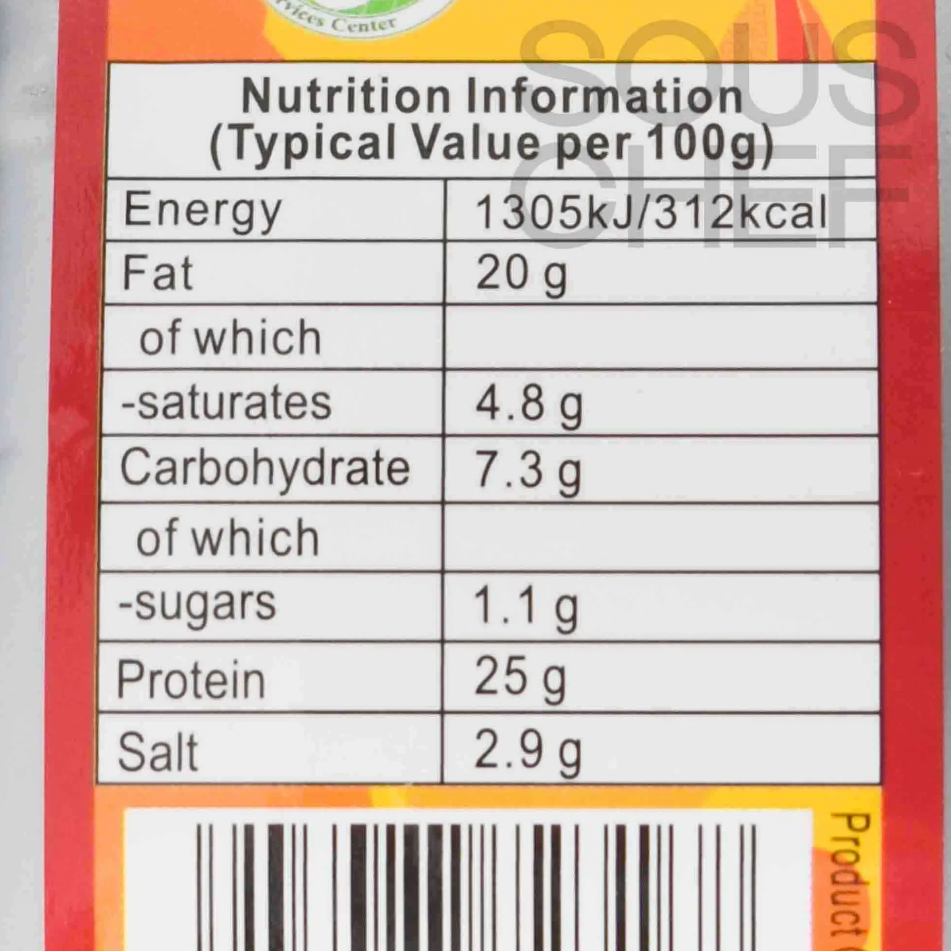 Product formulations and details may change. For the latest ingredients and allergen information always check product packaging prior to consumption. Ingredients: Fish (dace) (48.91%), soybean oil (25.54%), black beans (black soybean, water, salt)(21.2%), water, sugar, spices, soy sauce (water, soybean, salt, wheat (gluten), flour), flavour enhancer (e621), salt