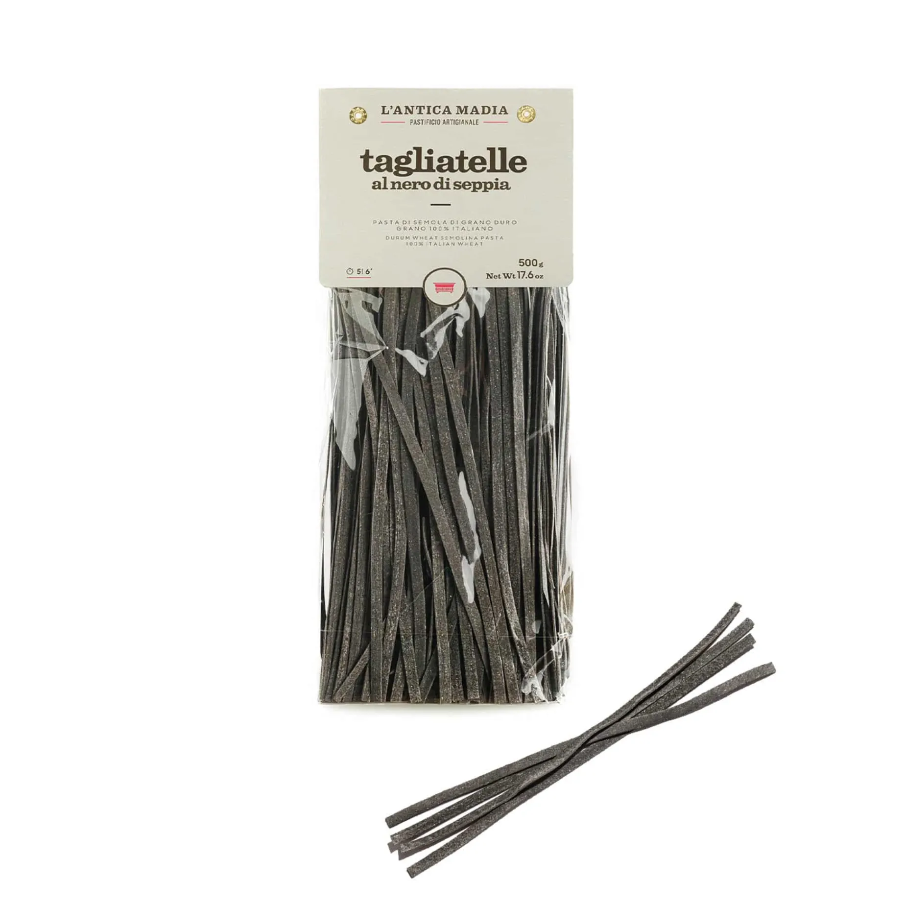Pasta L’Antica squid ink tagliatelle is perfect for seafood suppers. Toss the silky black pasta with clams, mussels, squid and prawns for a memorable Italian meal.