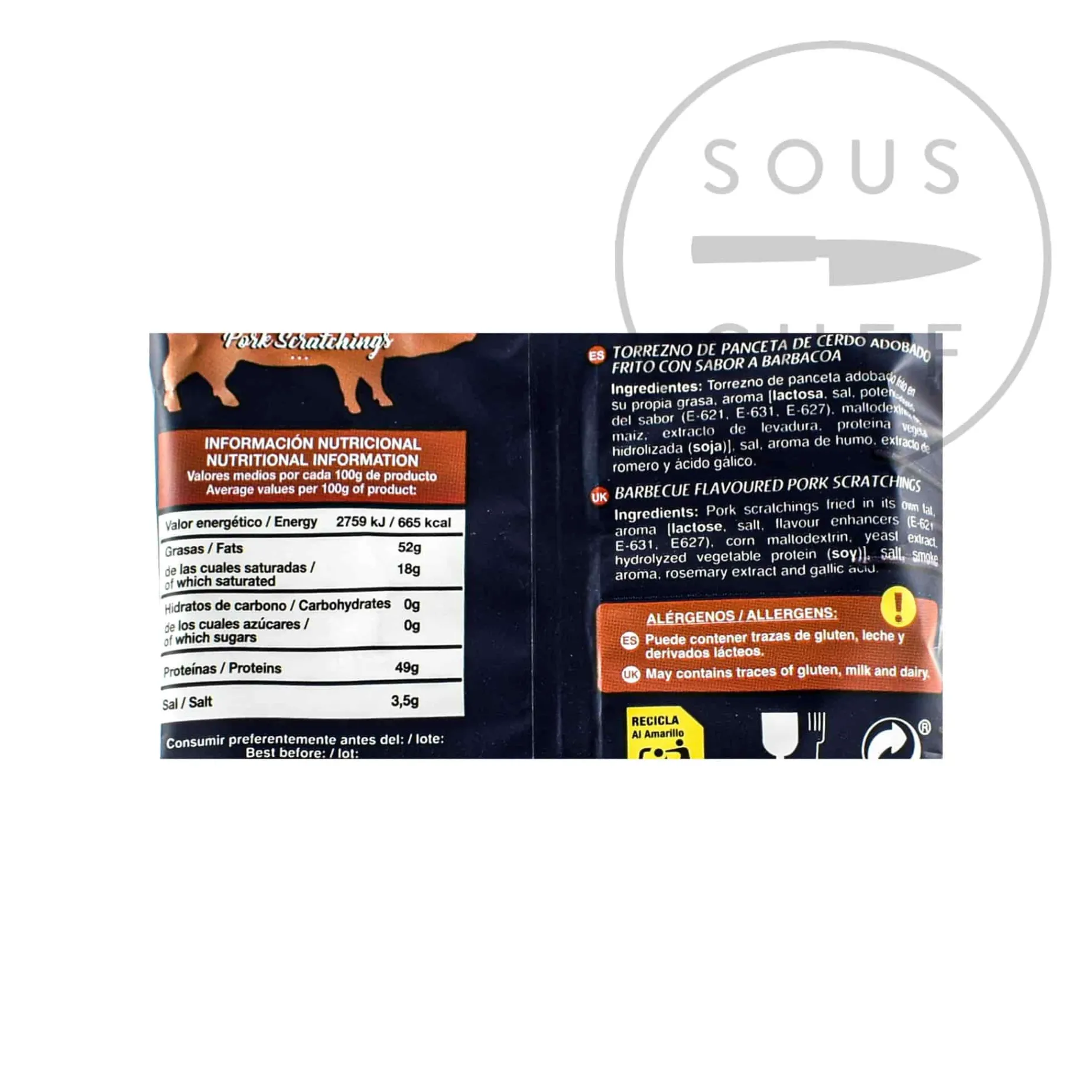 Product formulations and details may change. For the latest ingredients and allergen information always check product packaging prior to consumption. Ingredients: pork scratchings fried in its own fat, aroma [lactose, salt, flavour enhancers (E621, E631, E627)], corn maltodextrin, yeast extract, hydrolyzed vegetable protein, (soy)]salt, smoke aroma, rosemary extract and garlic acid.