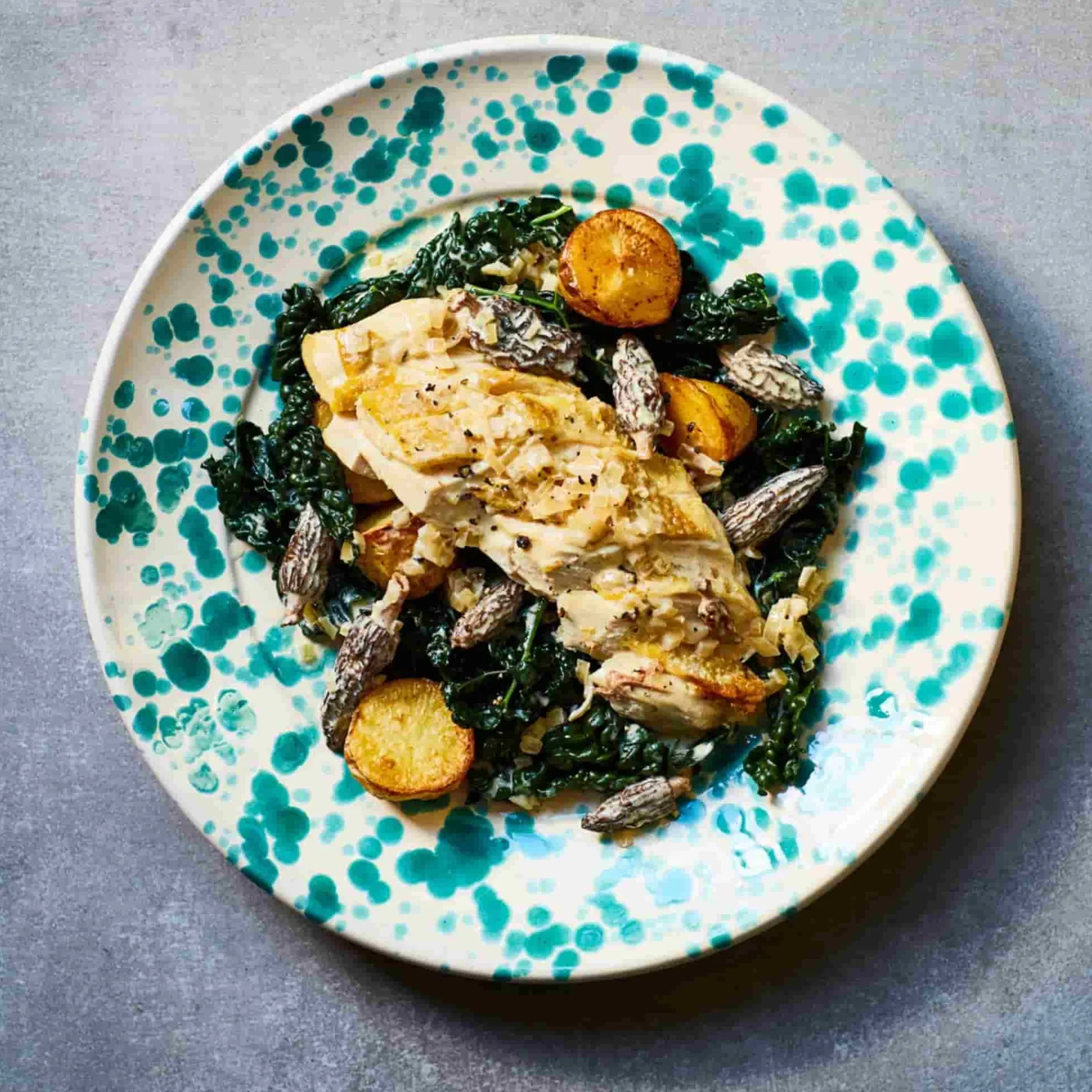 The Puglia aquamarine splatter large salad bowl is a modern way to serve panzanella salads and fresh fruit. Made in Italy, this cream bowl has a striking blue splatter design, inspired by the sea.