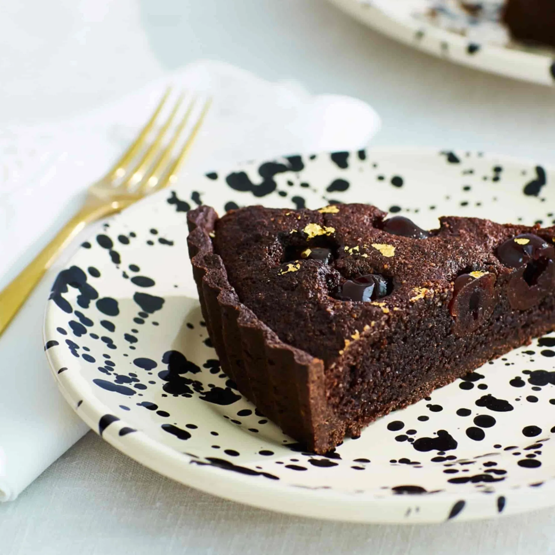 This Italian-made bowl has a striking black splatter design. Use it everyday to make mealtimes extra special.