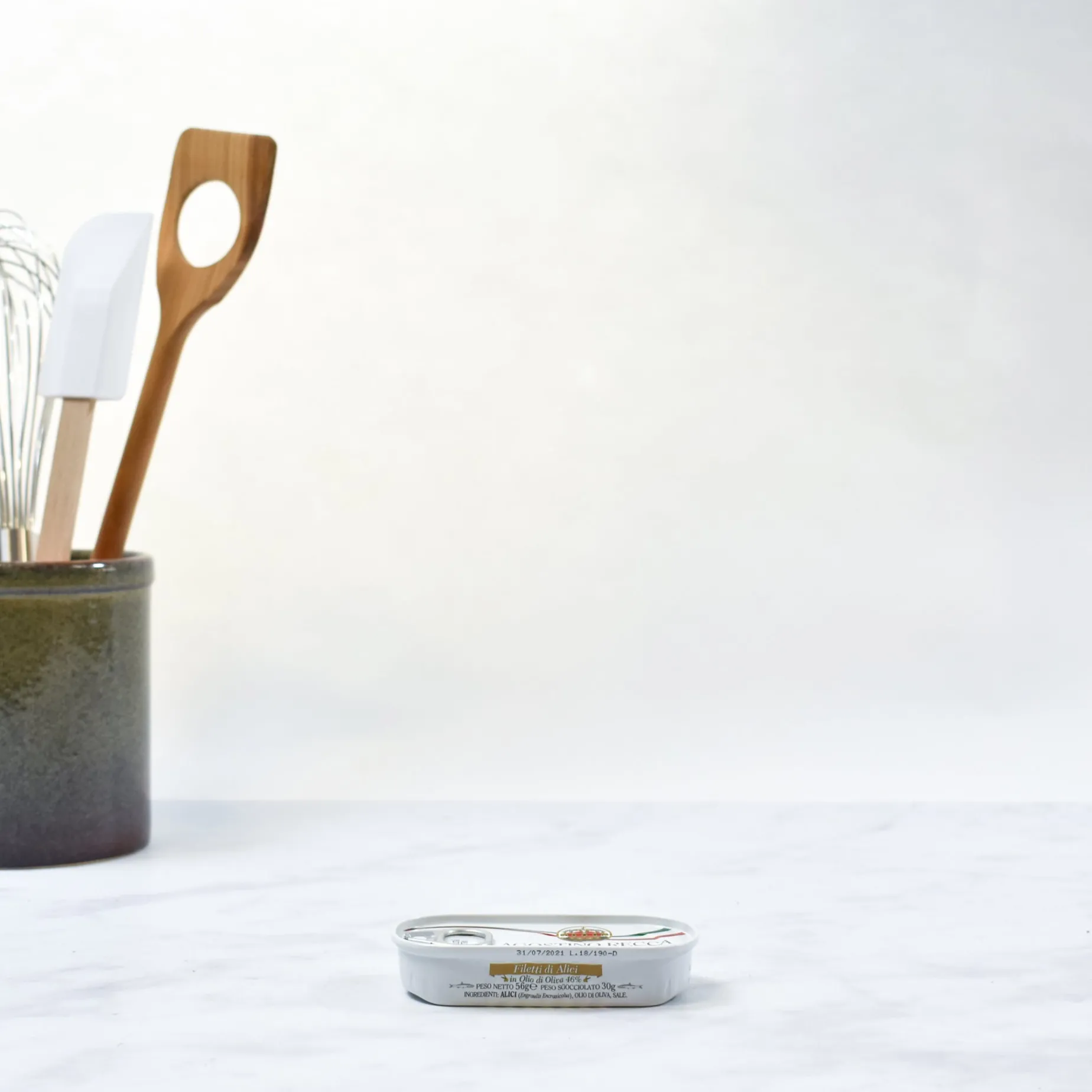 Recca anchovy fillets are tender yet meaty, with an intense saltiness that boosts puttanesca pasta sauces and Caesar salad dressings. Dyed-in-the-wool anchovy lovers will also enjoy Recca anchovy fillets straight from the tin, draped over fresh bread with a squeeze of lemon.