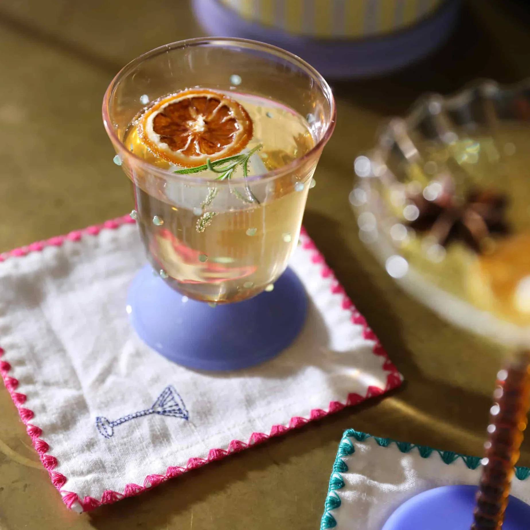 Pair the glasses with a colourful carafe so guests can help themselves to water. Or, fill them with your favourite soft drinks. They’re perfect for lemonade and freshly squeezed juice.