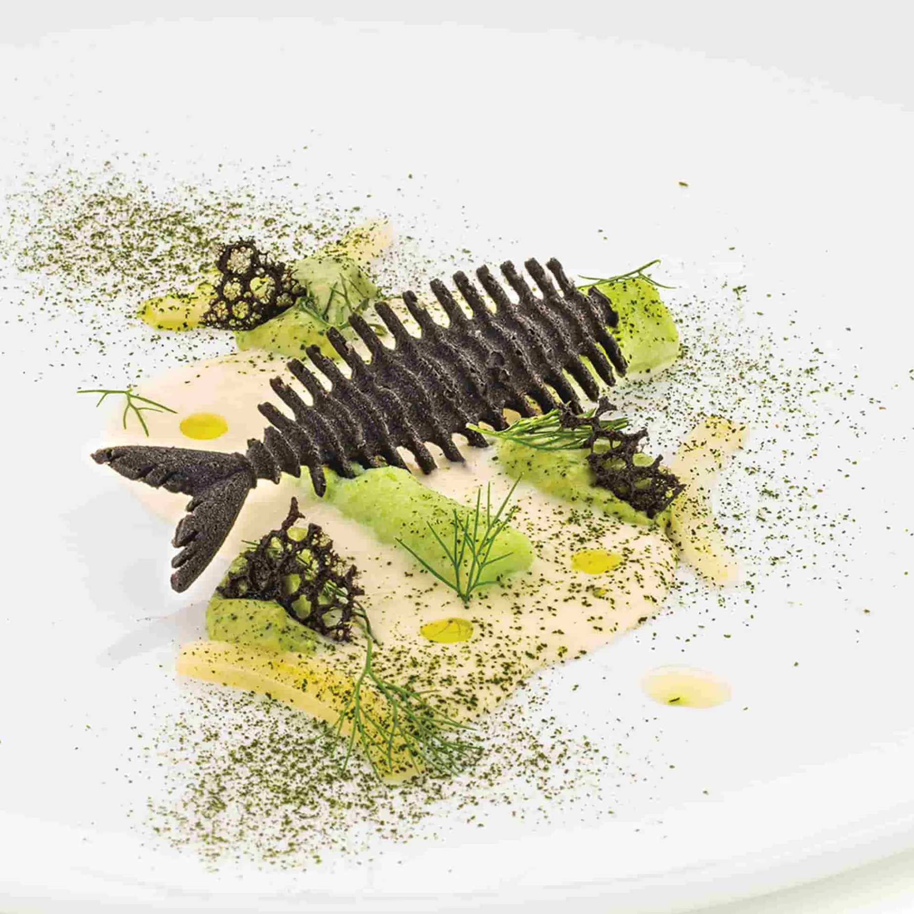 This Silikomart food mould has a unique fish bone design. Use it to create delicate parmesan biscuits or savoury jellies to enhance a fish or seafood dish. It could also be used to create fish-shaped finishing touches for an under-the-sea themed cake or dessert. Use food colouring or lustre dust to add a touch of fine dining flair to your dinner table.