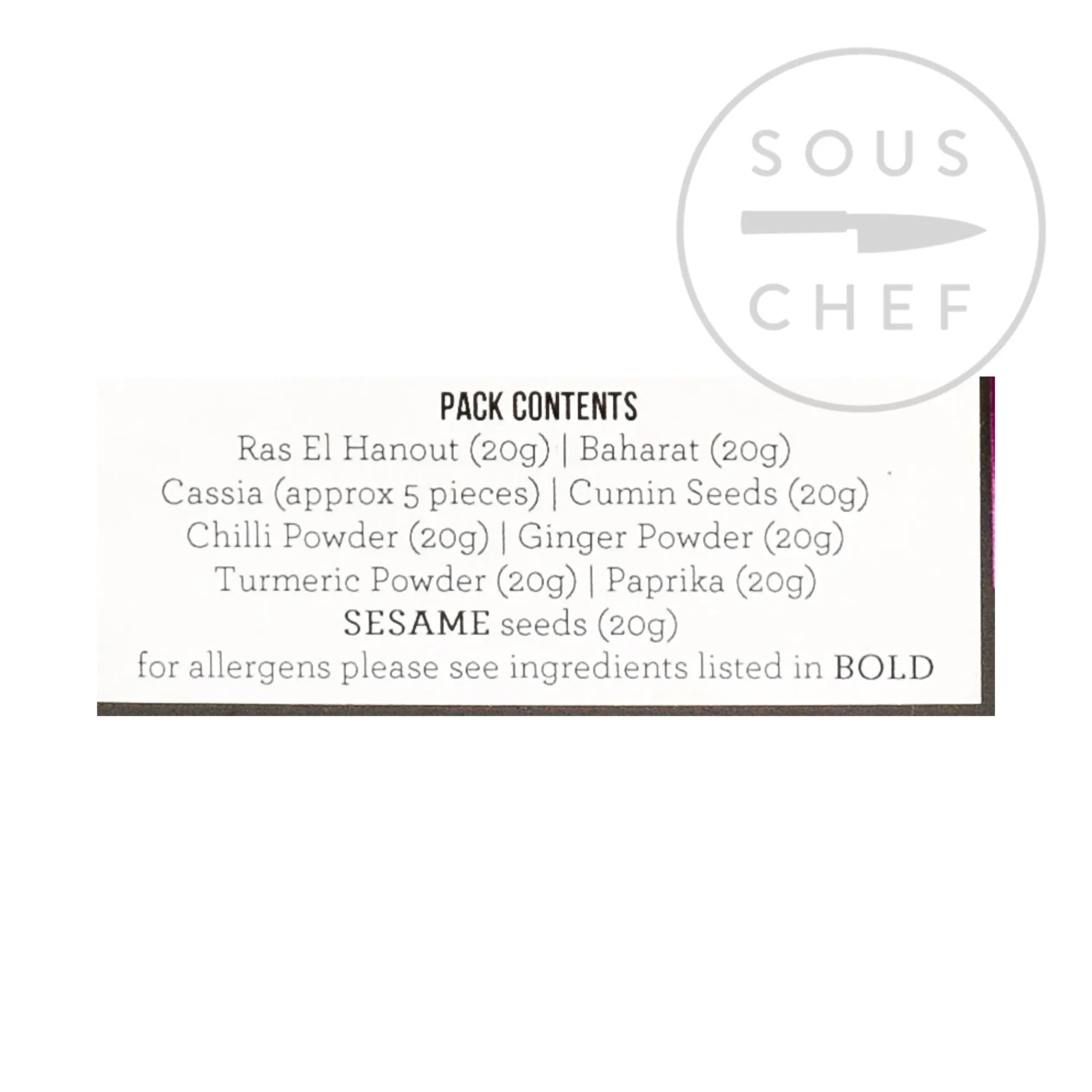 - Ras el Hanout 20g– warm, aromatic blend of cumin, coriander, cinnamon, ginger, black pepper, turmeric and cardamom