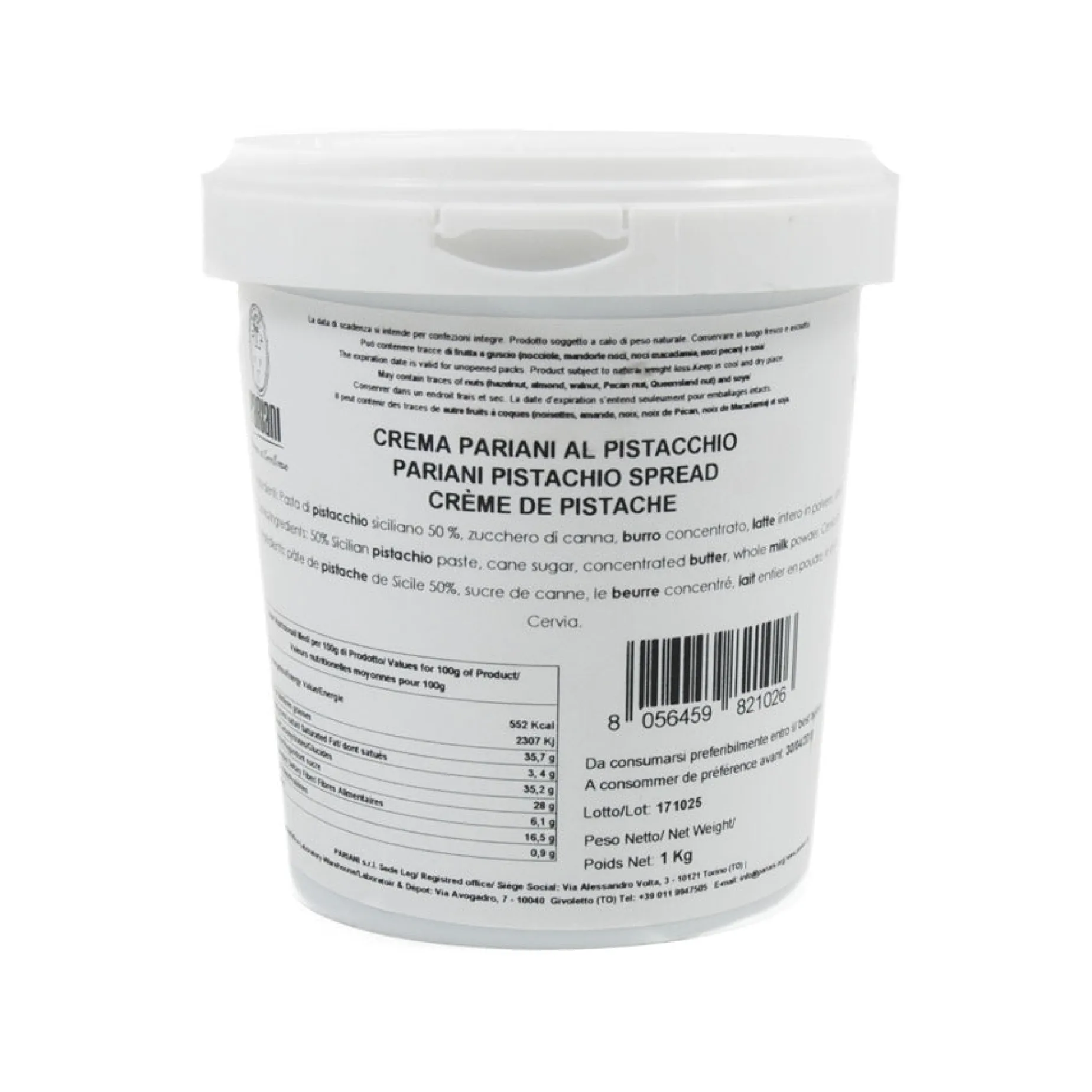 Product formulations and details may change. For the latest ingredients and allergen information always check product packaging prior to consumption. Ingredients: Sicilian pistachio paste (50%), cane sugar, concentrated butter, whole milk powder, Cervia salt. Contains allergens: nuts, milk.