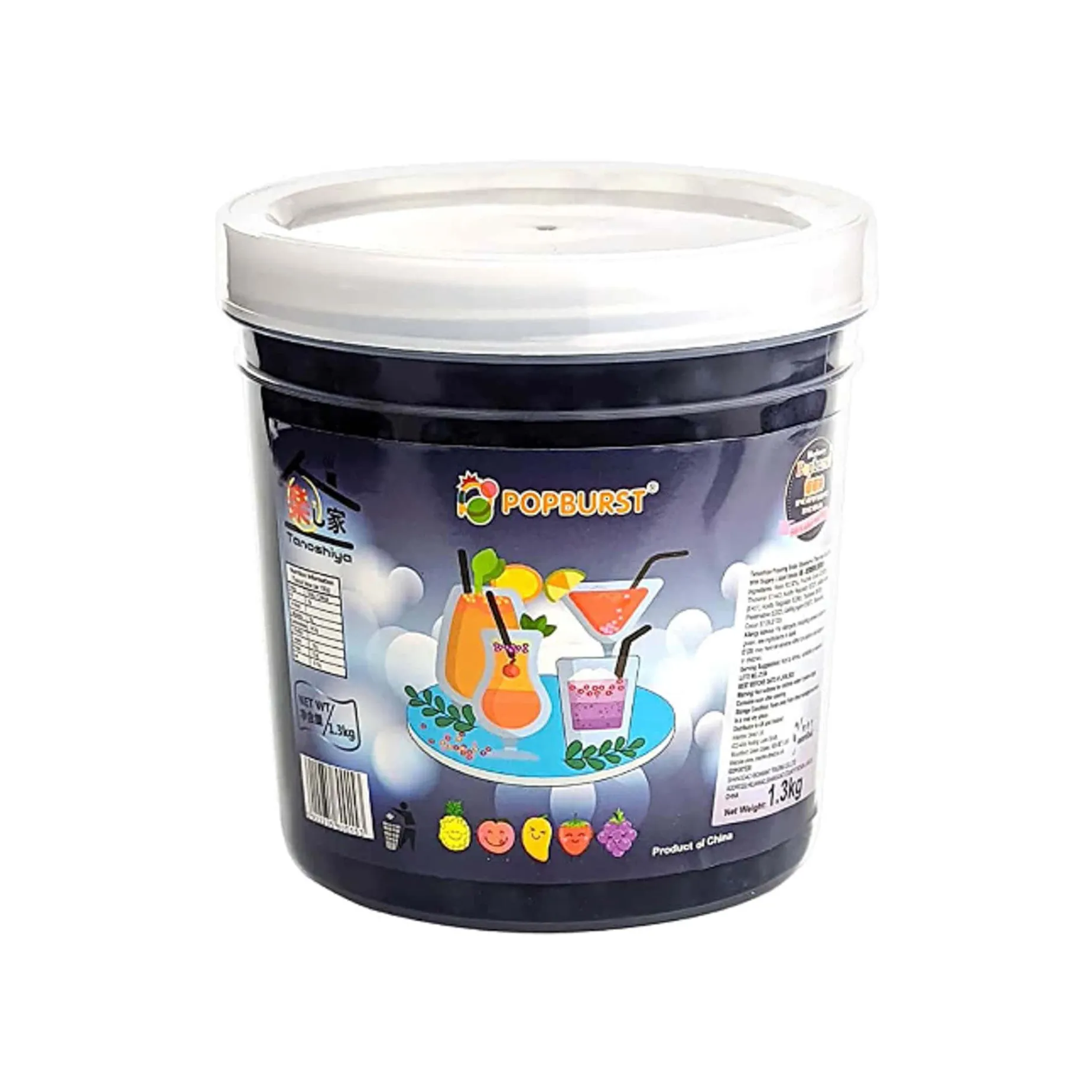 Popping boba are different in texture from Tapioca pearls, which are also used in bubble tea. Tapioca have a chewy gelatinous texture all the way through, whereas popping boba have a thin membrane that pops in the mouth (as the name would suggest) to release a burst of fruit-flavoured juice. Tapioca requires cooking, whereas popping boba are ready to add to your drinks and desserts instantly.