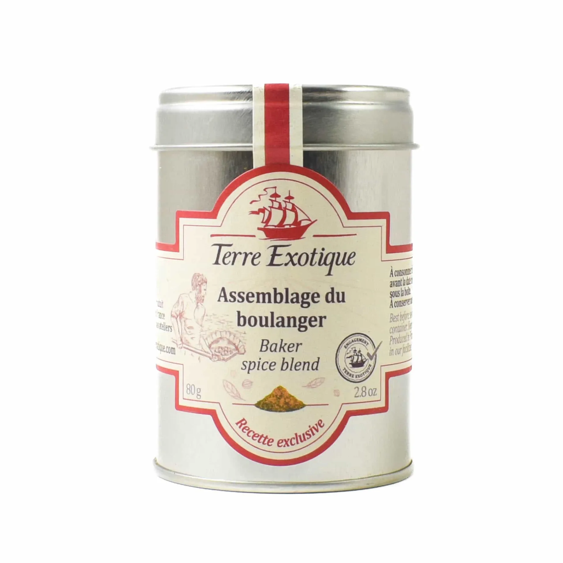 Terre Exotique’s baker spice blend has an earthy aroma and warm, spicy flavour. Made with turmeric, nigella seeds, garlic and black pepper, it will transform homemade bread and pastries. Add it to your baguette dough to make a classic French stick with a hint of spice.