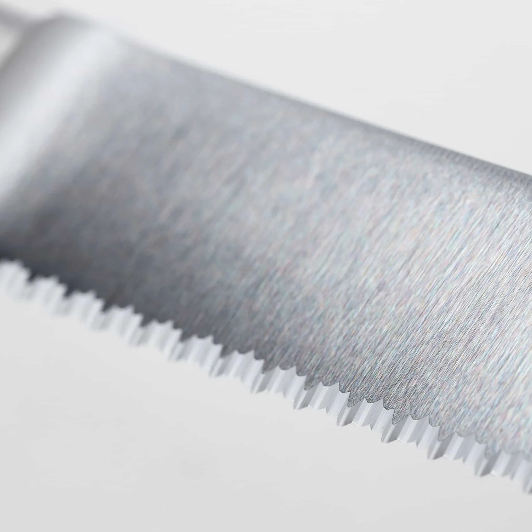 Whether you’re slicing through crusty baguettes or soft brioche, the Wusthof Ikon Bread Knife, with its balanced design and full tang construction, delivers superior strength and stability, transforming your bread-cutting tasks into a seamless culinary experience.